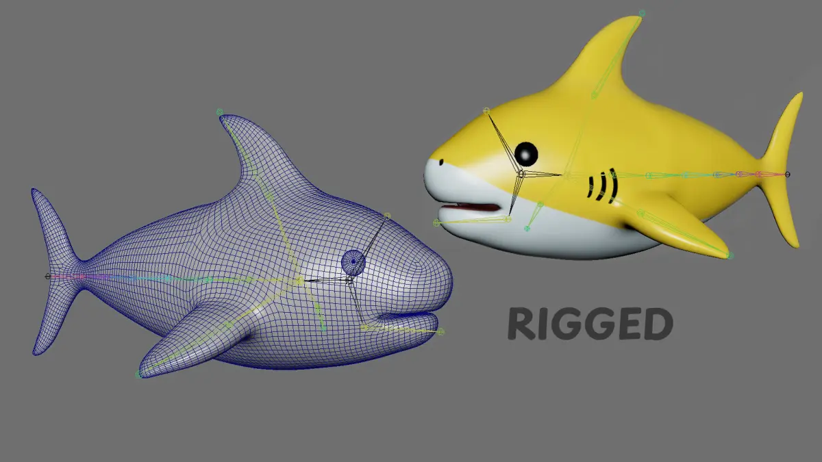 Cartoon Little Shark Yellow 3D Model - High-Quality Animated Low-poly 3D model