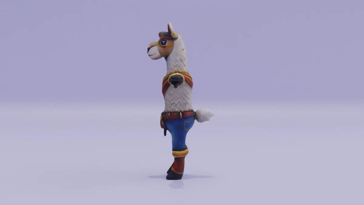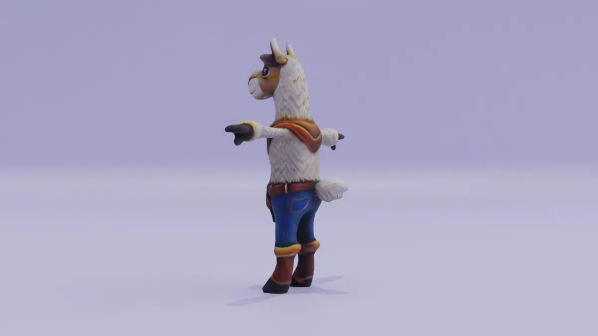 Cartoon llama Cowboy costume Character T-Pose Low-poly 3D model