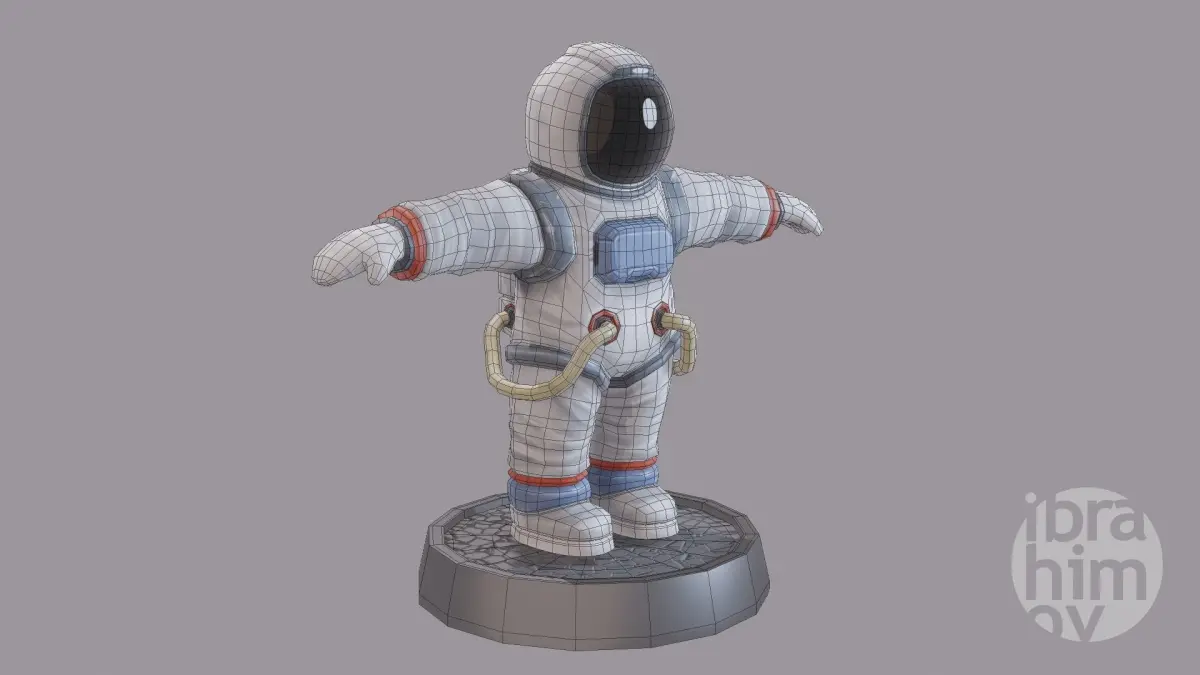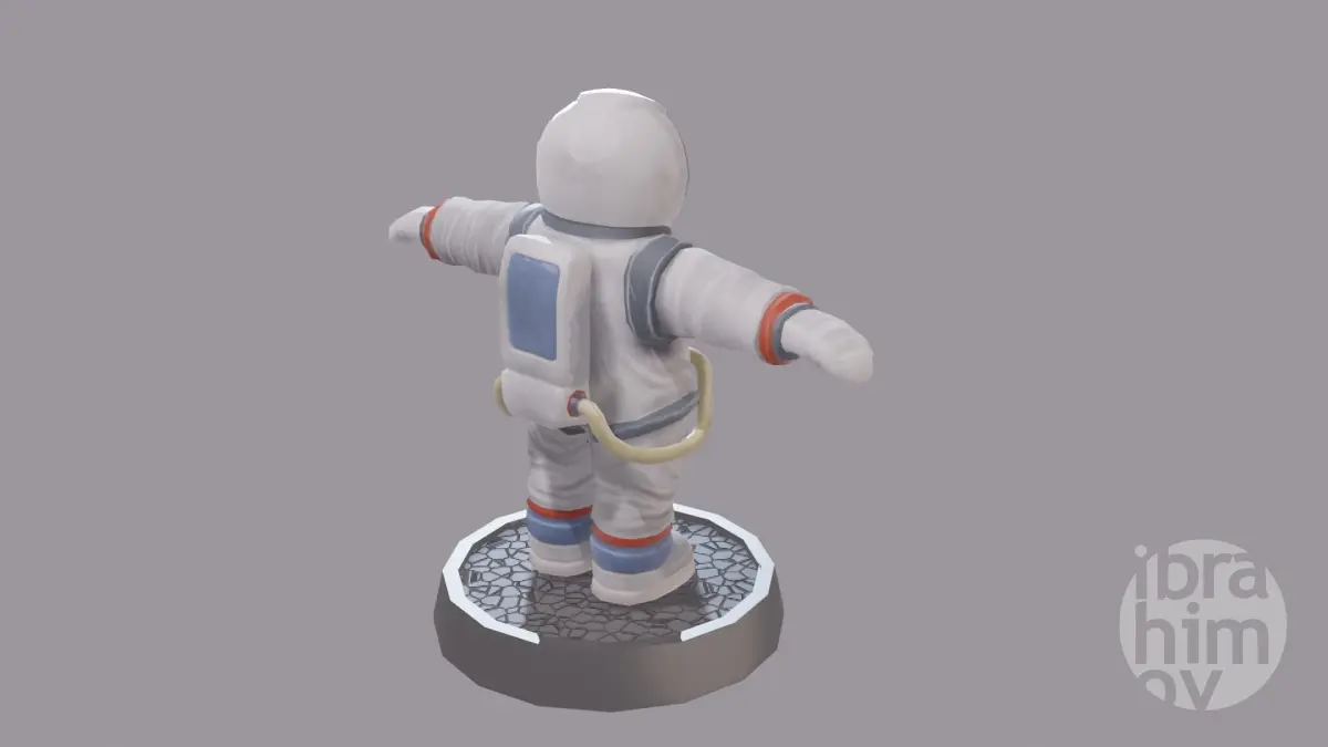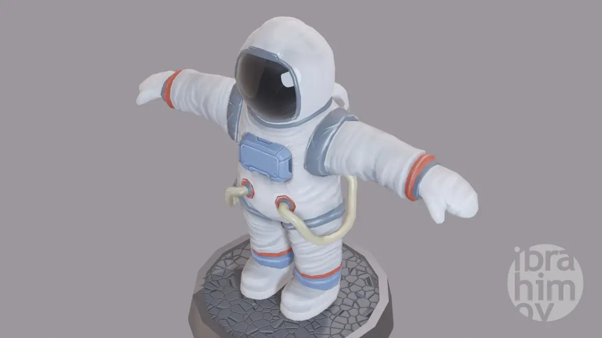 Stylized low poly cartoon astronaut with hand painted textures, good for games, cartoon, VR, printing