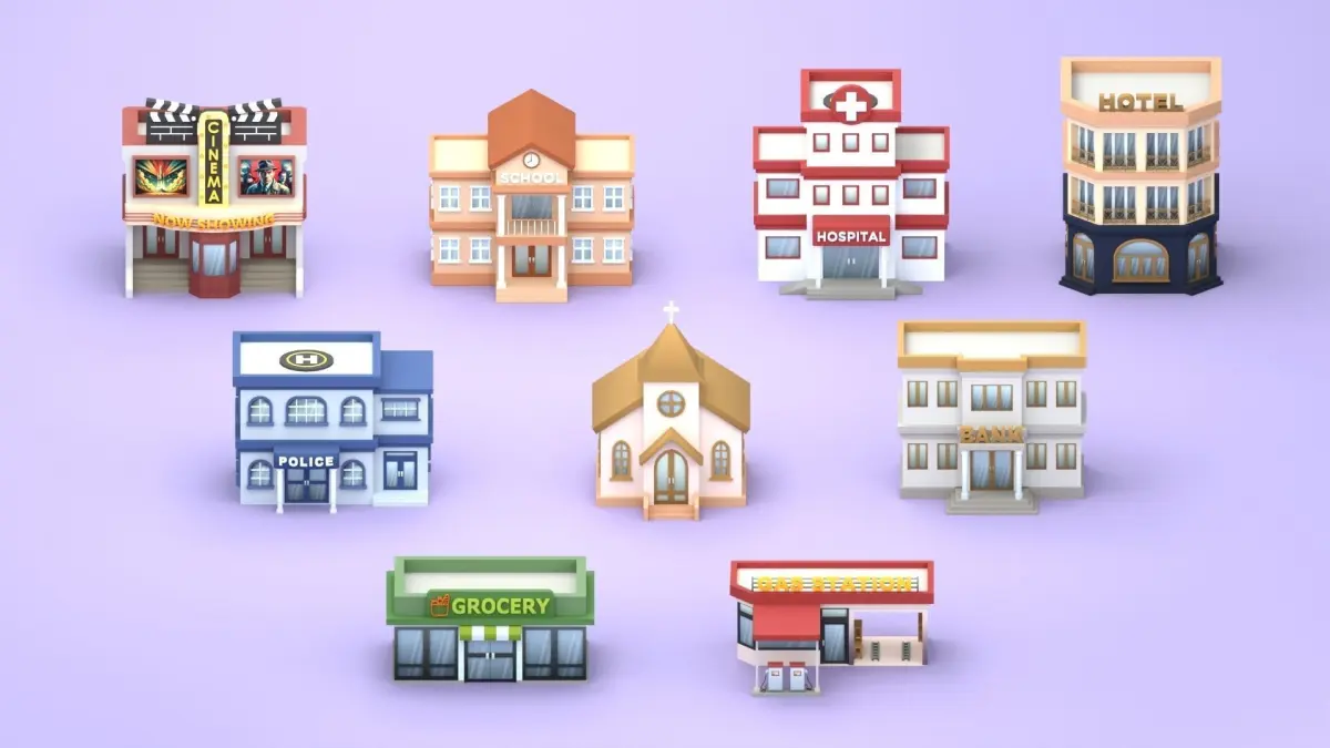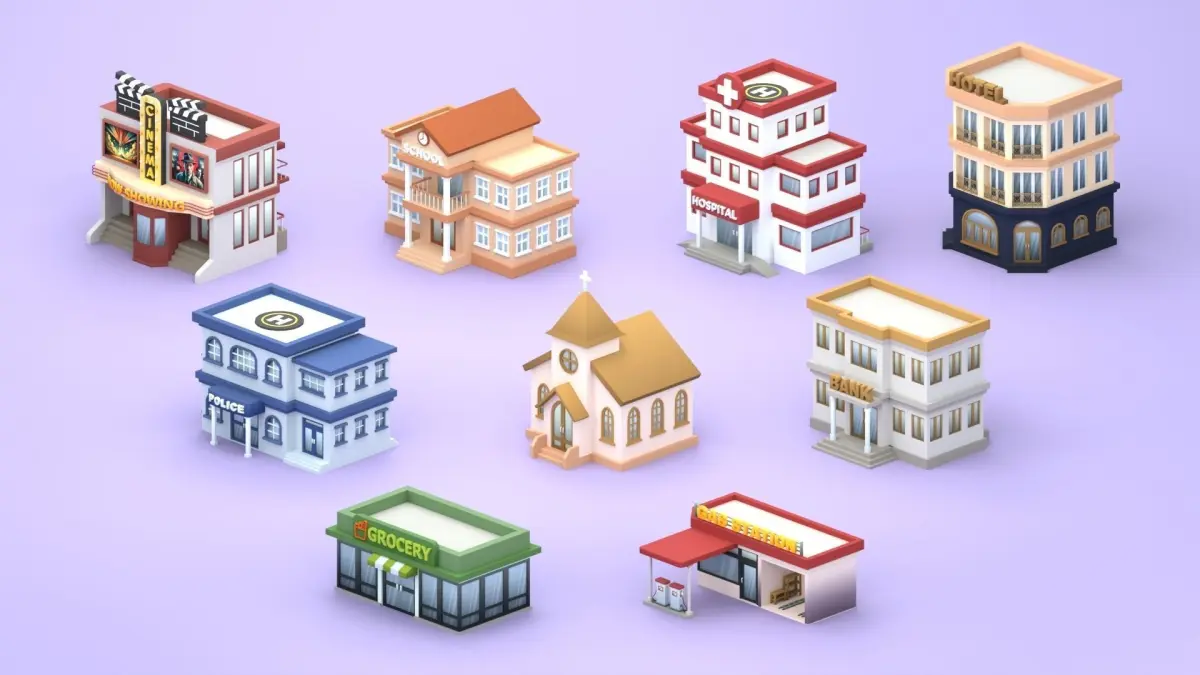 Cartoon Low Poly Building Pack Set2