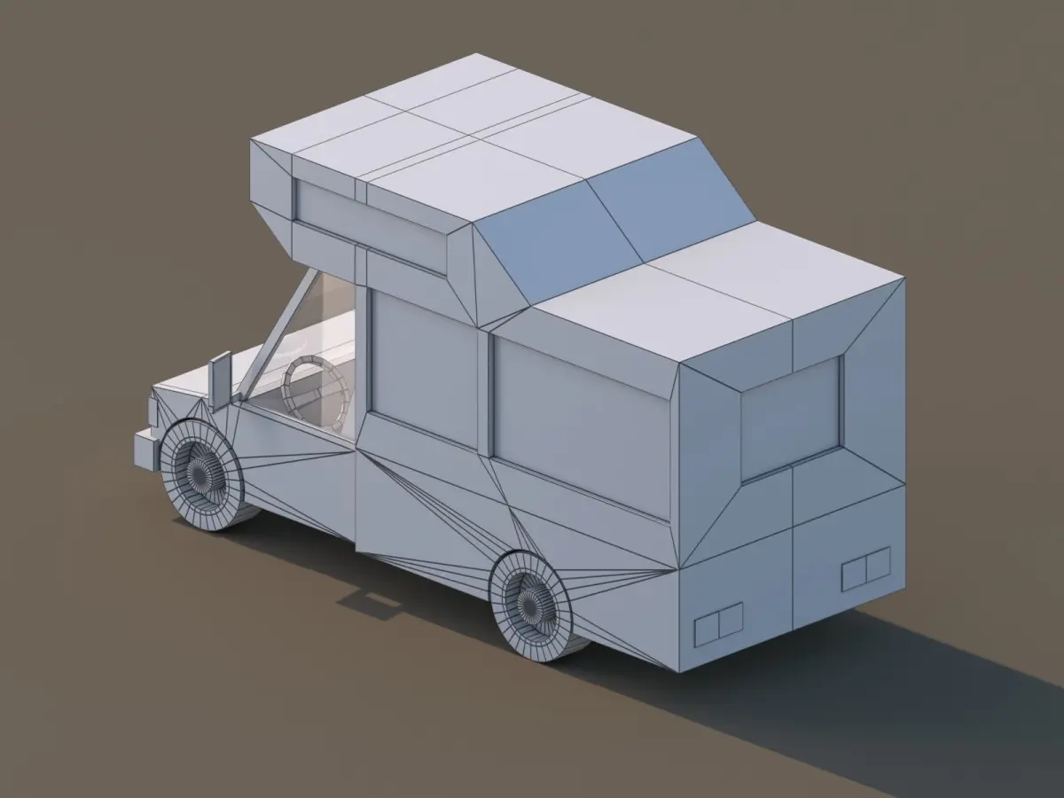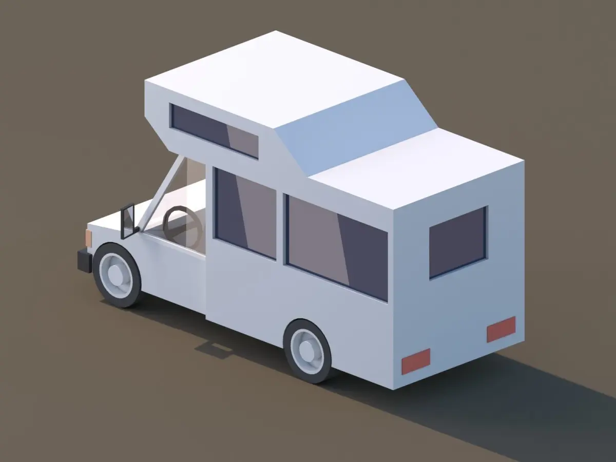 High quality low poly 3D model of motorhome car. Rendered in isometric view. Originaly created in 3Ds Max 2017 and V-Ray 3.60.03