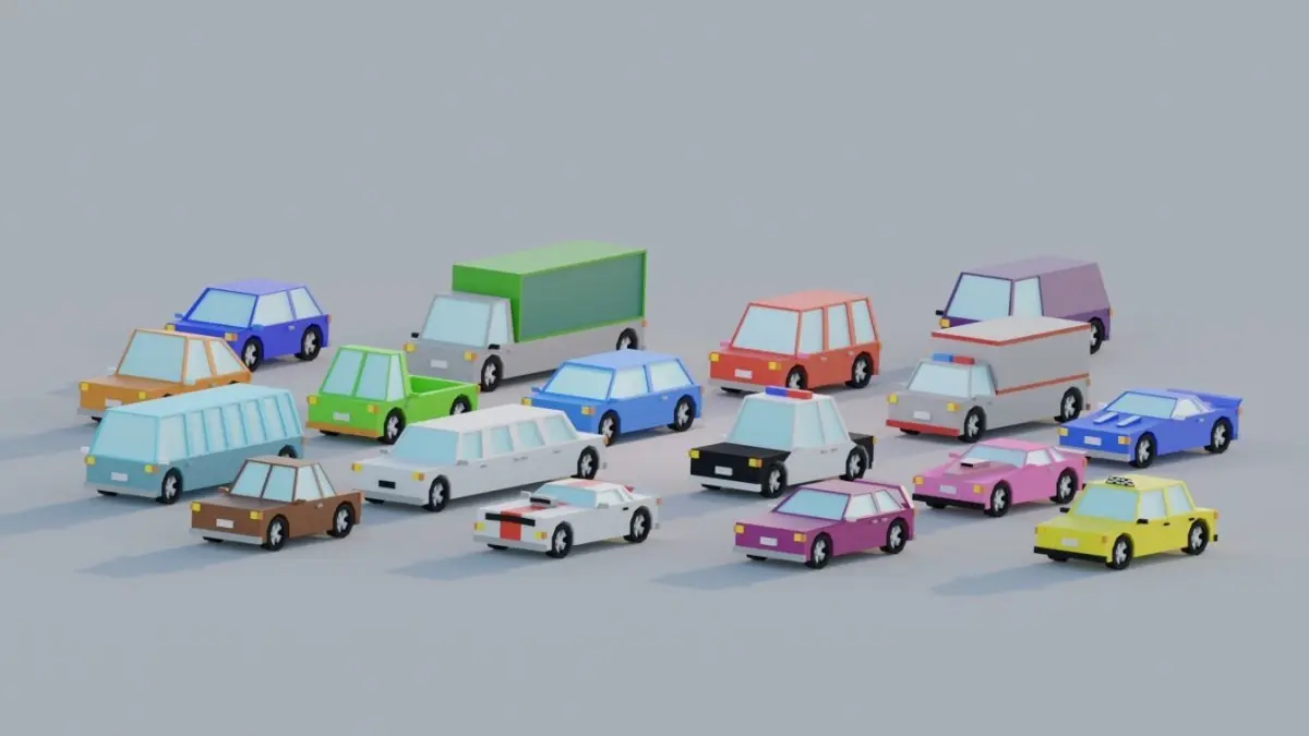 Cartoon Low Poly Cars Kit - this kit contains 17 Vehicles with materiales and no textures needed.