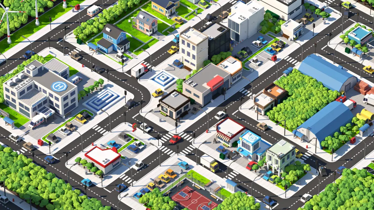 Pack of more than 110 high quality low poly 3D models. Buildings, roads, cars, trees and all other elements necessary to create city environments.