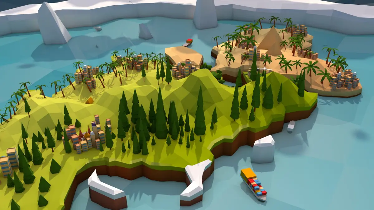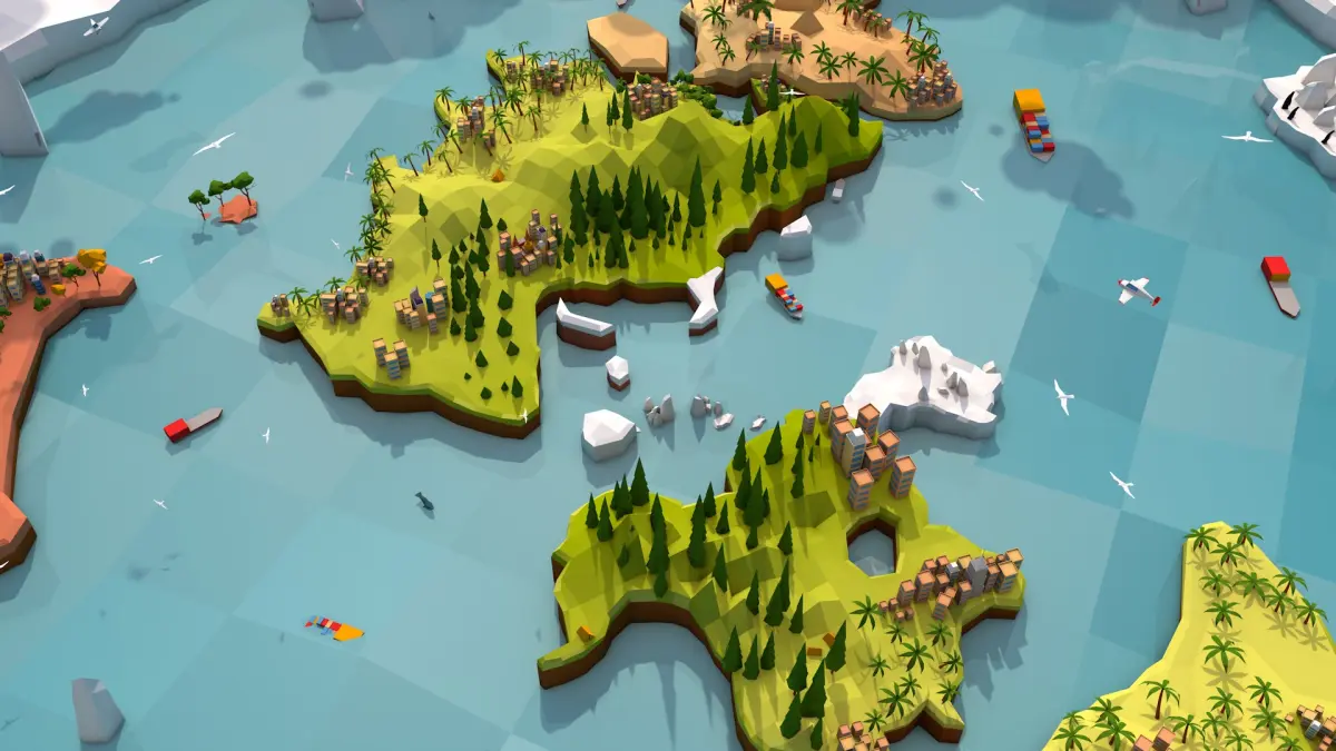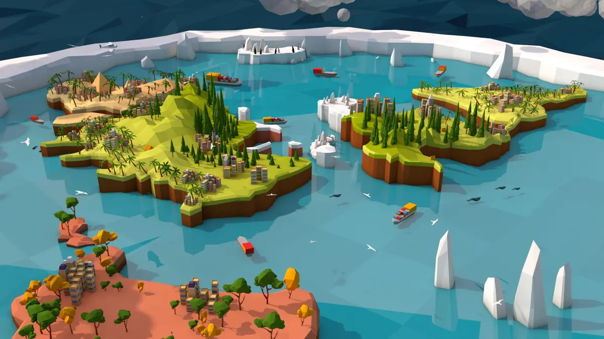- Cartoon Low Poly flat earth map illustration