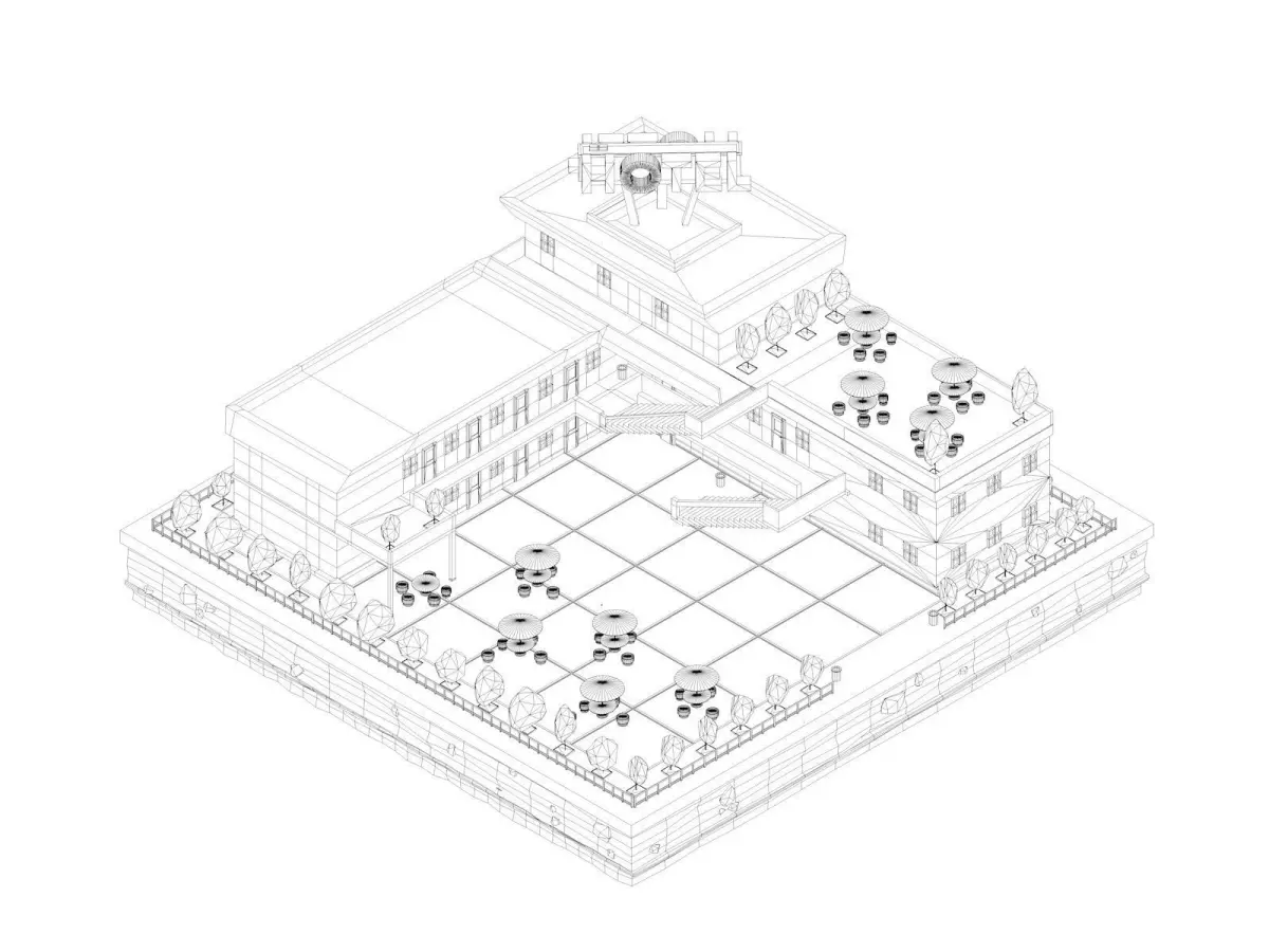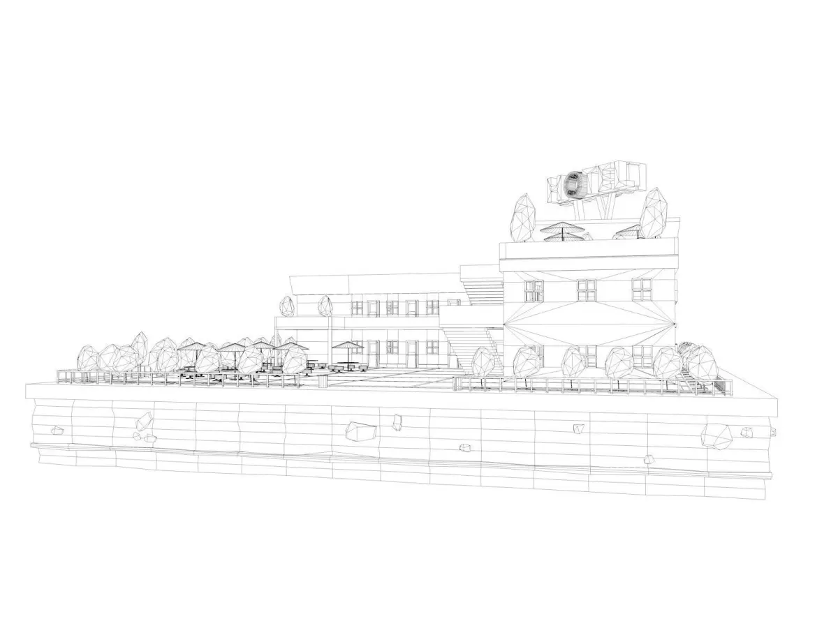 - Include PSD file with postproduction. Project Contails: Hotel Building, Trees, Landscape, Umbrellas, Chairs