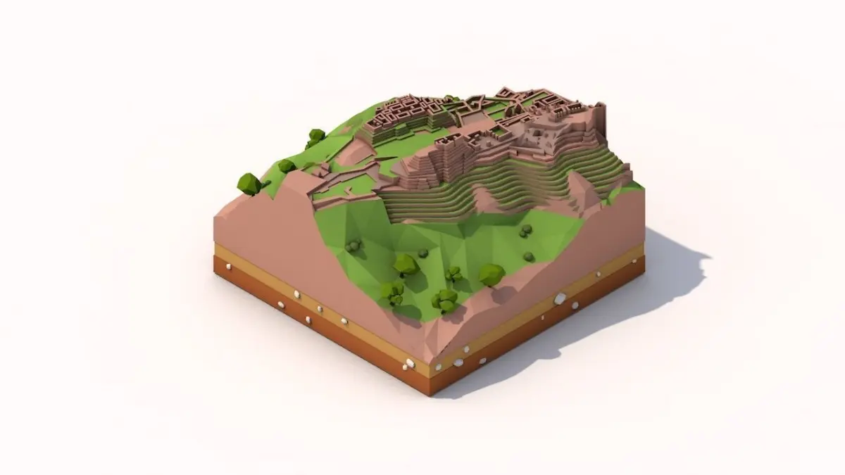 - Cartoon Low Poly Machu Pichu Landmark Scene Illustration