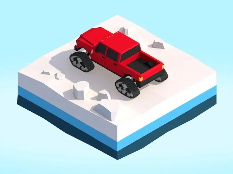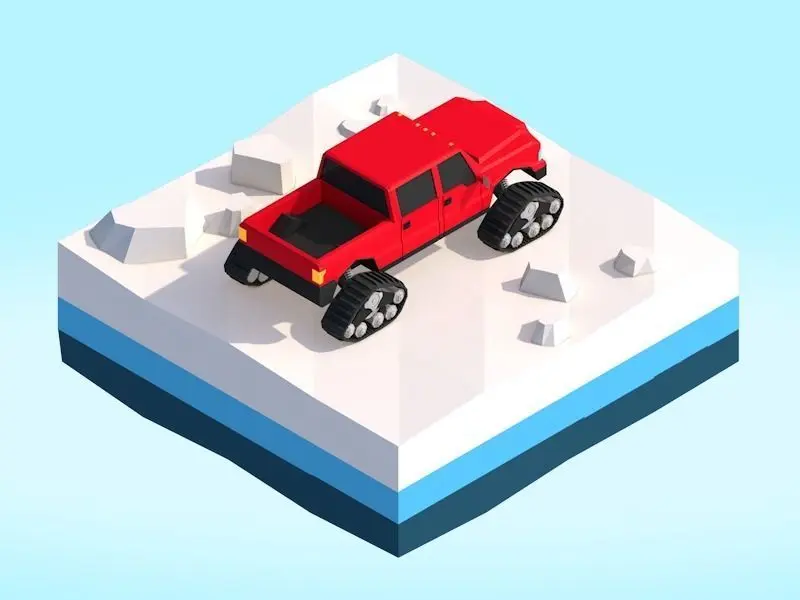 - Cartoon Low Poly Snow Jeep Tracks Vehicle Island Scene