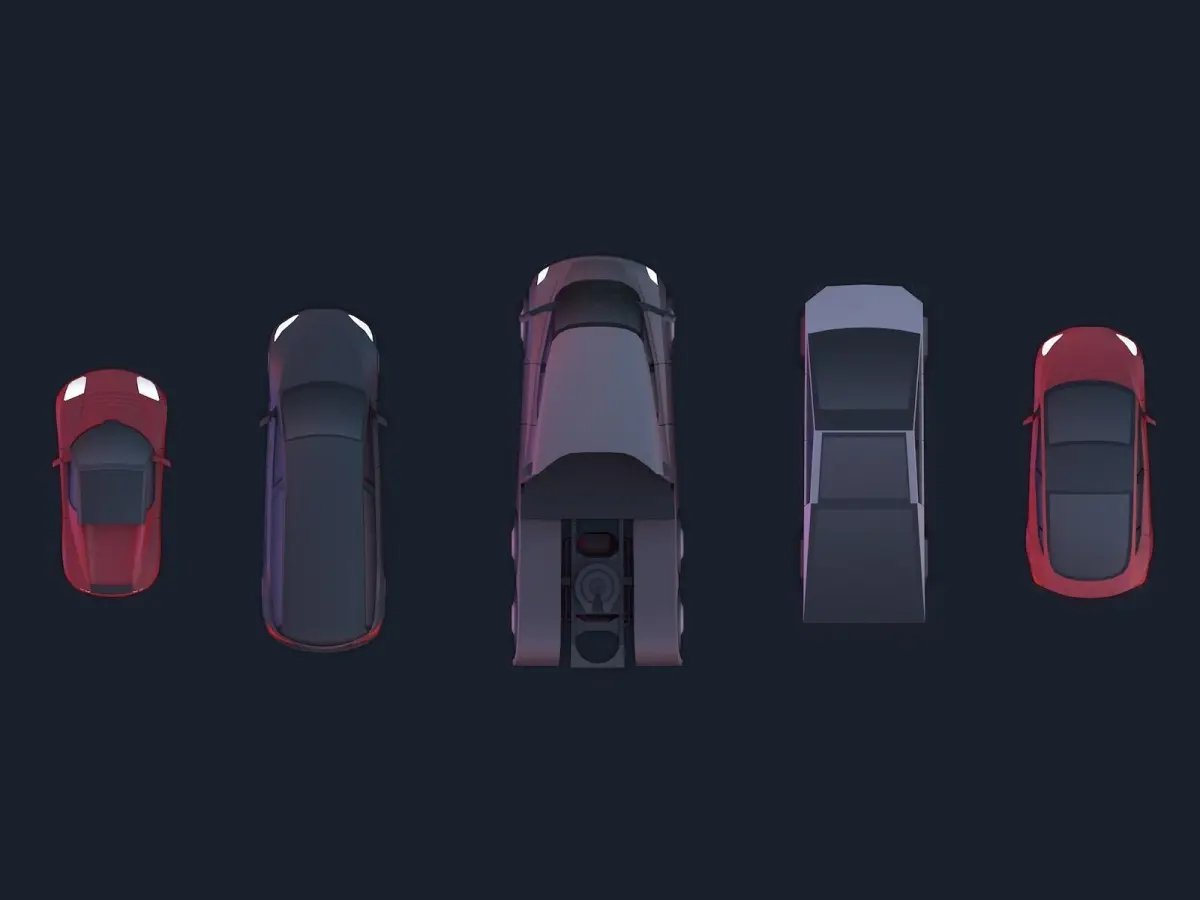 - Cartoon Styled Low Poly Esthetic Tesla Electro Cars Set