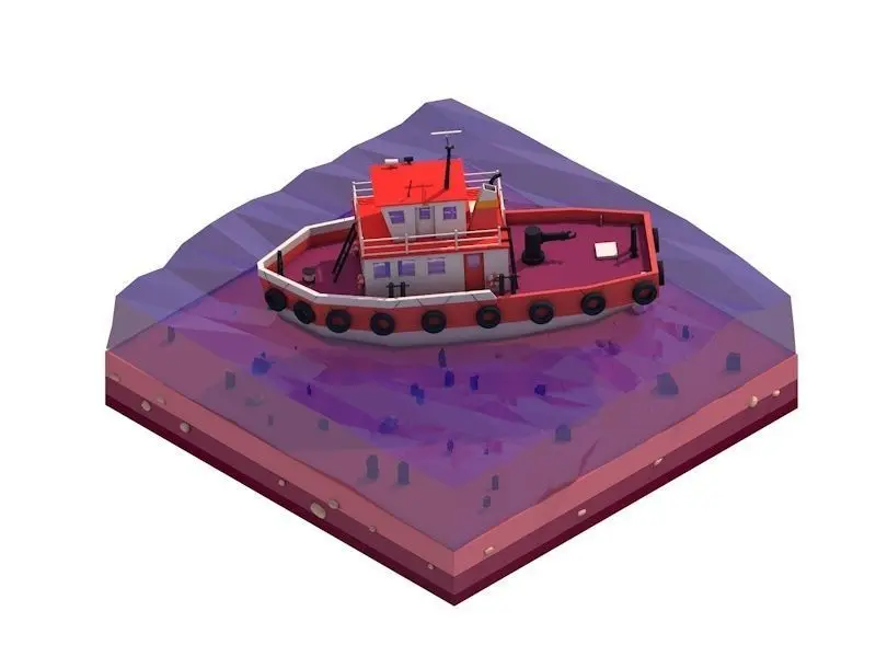 - Cartoon Lowpoly Tugboat Illustration Scene