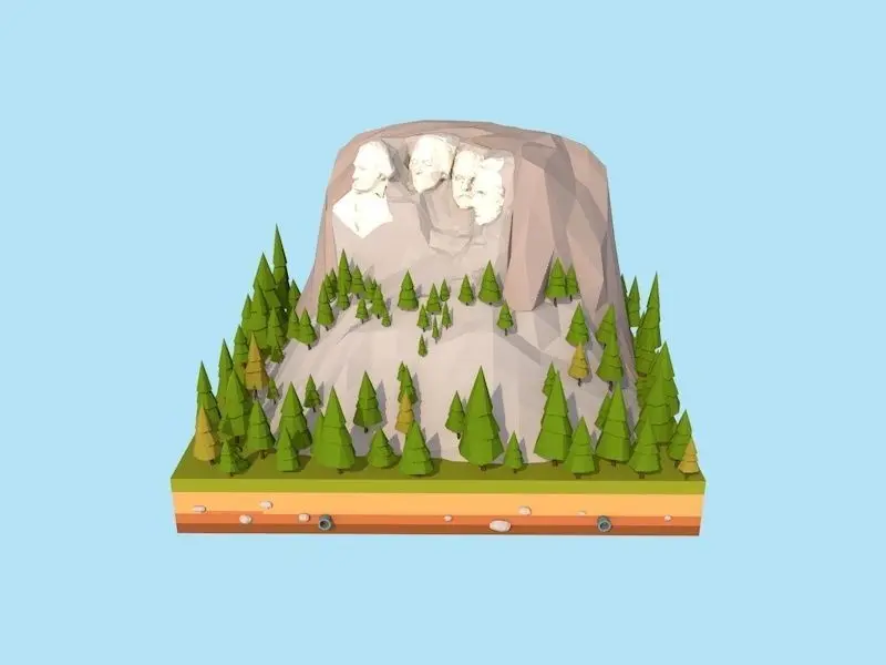 - Cartoon Low Poly United States Rushmoor Landmark Asset
