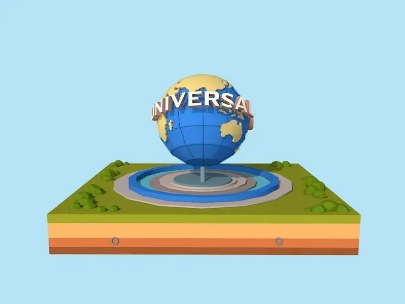 - Cartoon Low Poly Universal Studio Globe Landmark Asset