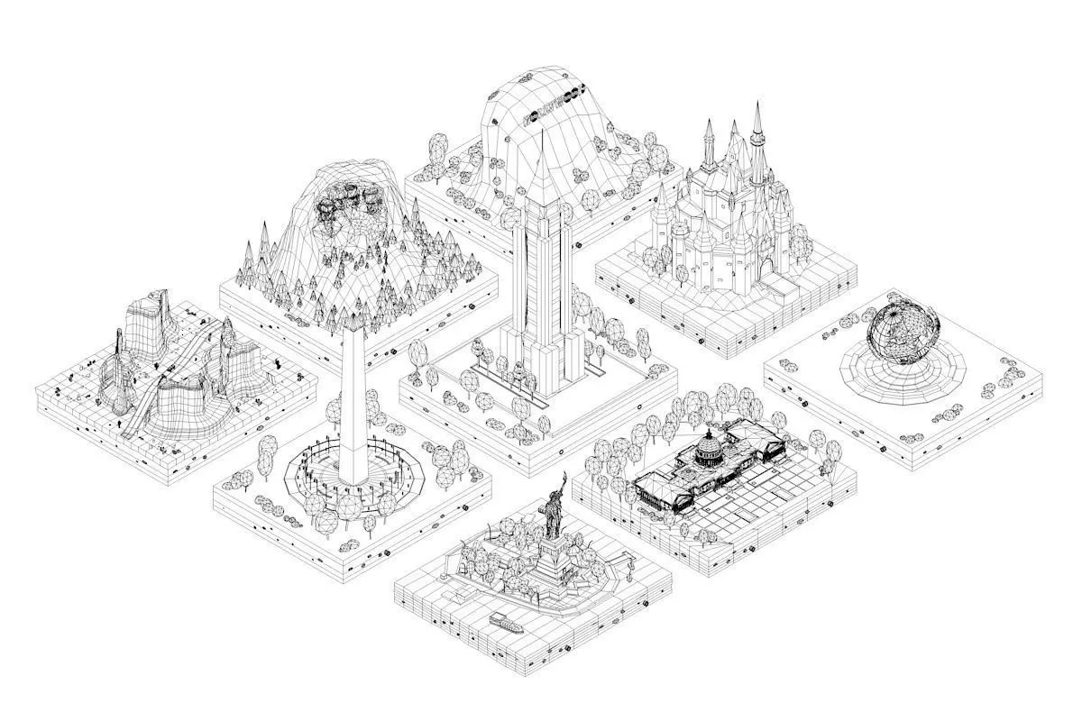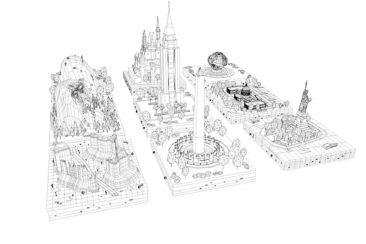 - Pack include:Statue Of Liberty, Dysney Castle, Empire State Building, United States Of Capitol, Rushmoor, Washington Monument, Universal Globe, Hollywood