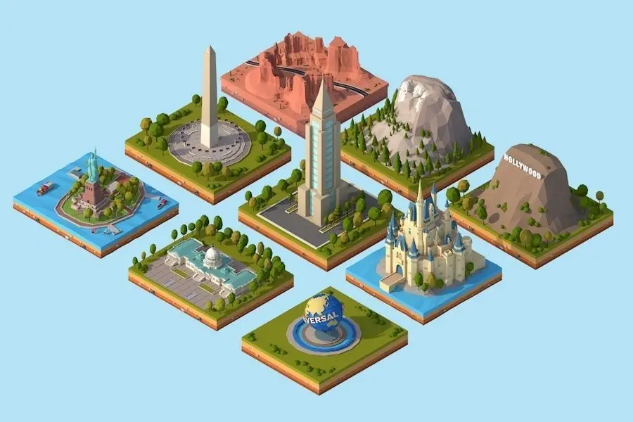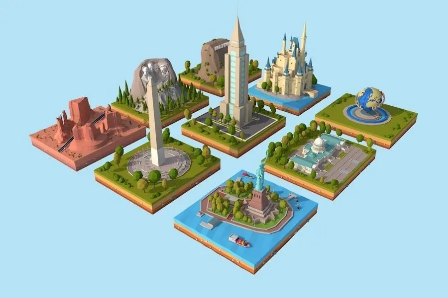 - Cartoon USA World Landmarks Low Poly Bundle