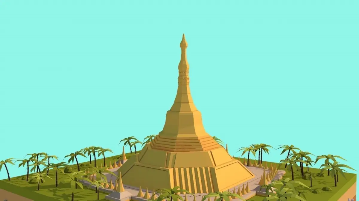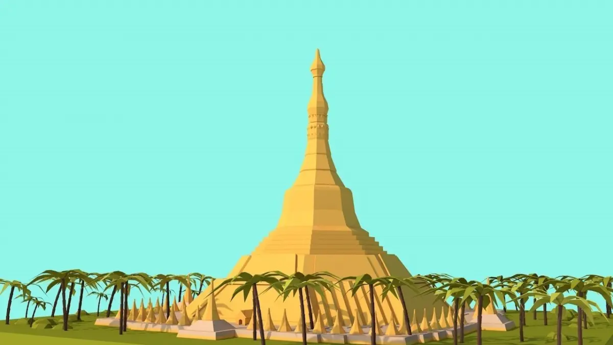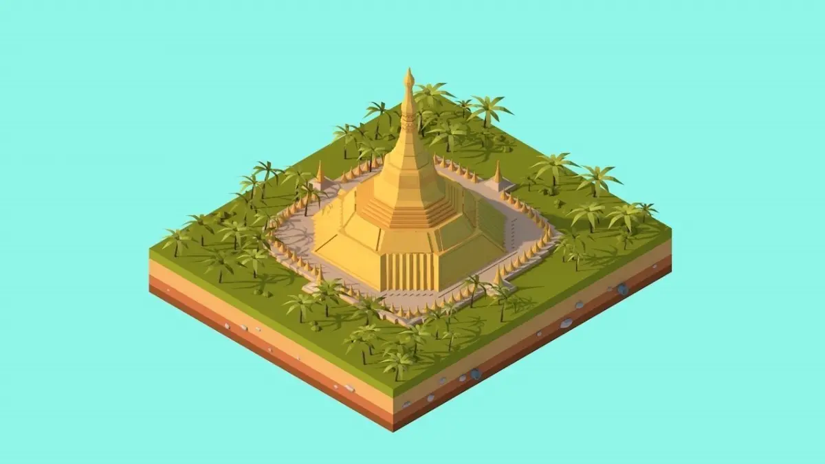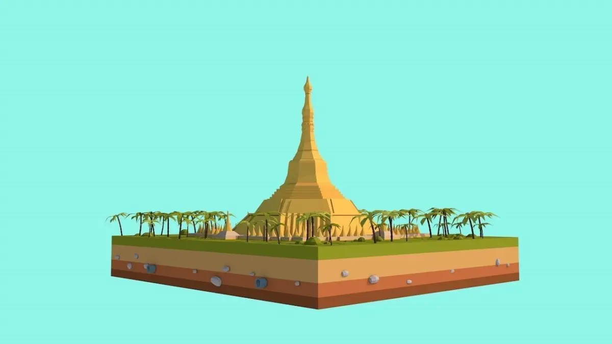 - Cartoon Lowpoly Shweadagon Pagoda Scene