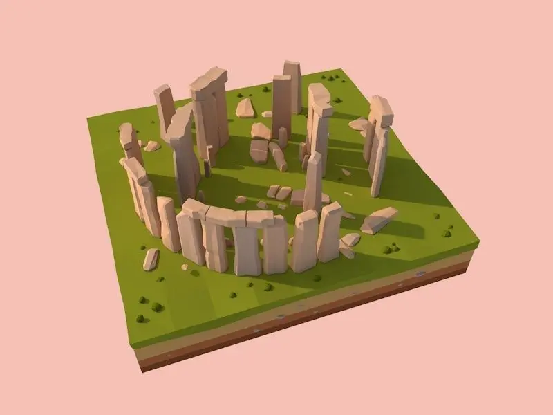 - Cartoon Lowpoly England Stonehenge Landmark