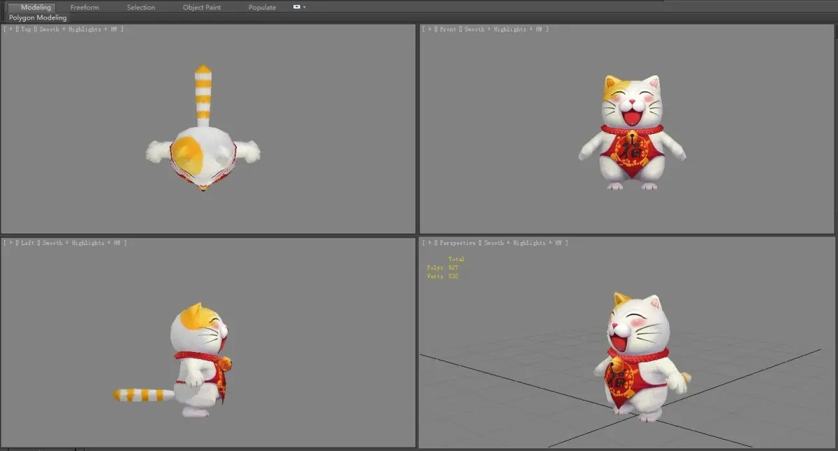 Cartoon Lucky cat - White cat Low-poly 3D model