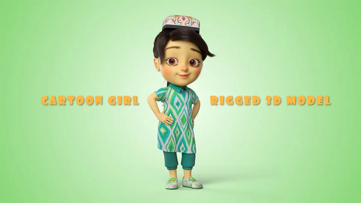 High Quality Cartoon Girl with hair style Full rigged Ready for Animation