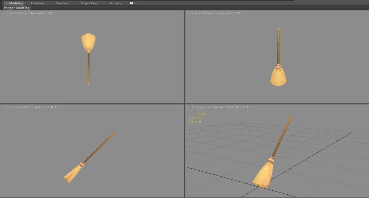 Cartoon magicdi broom Low-poly 3D model