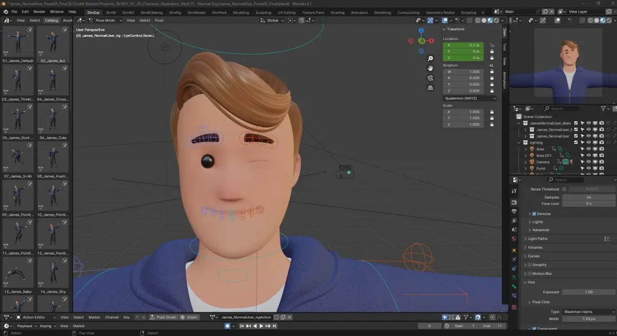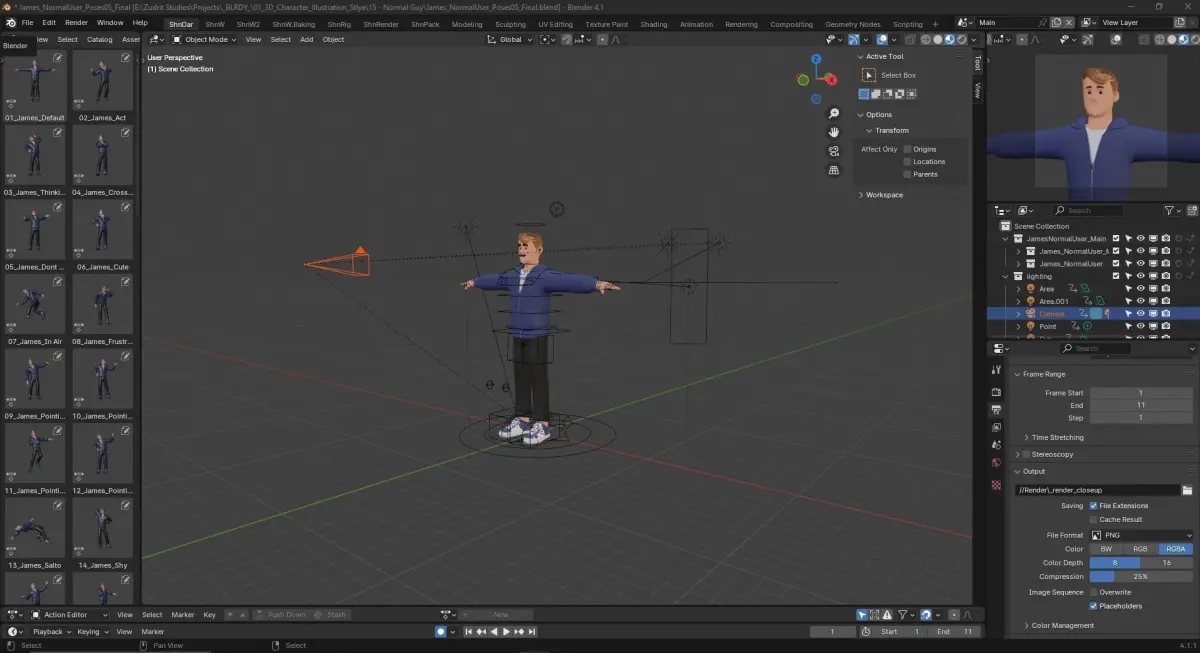 Cartoon Illustration Man Character made in Blender 4.1.1 Light setup in Cycles & EEVEE. Ready for your Personal Websites, Movies, TV, advertising, etc.