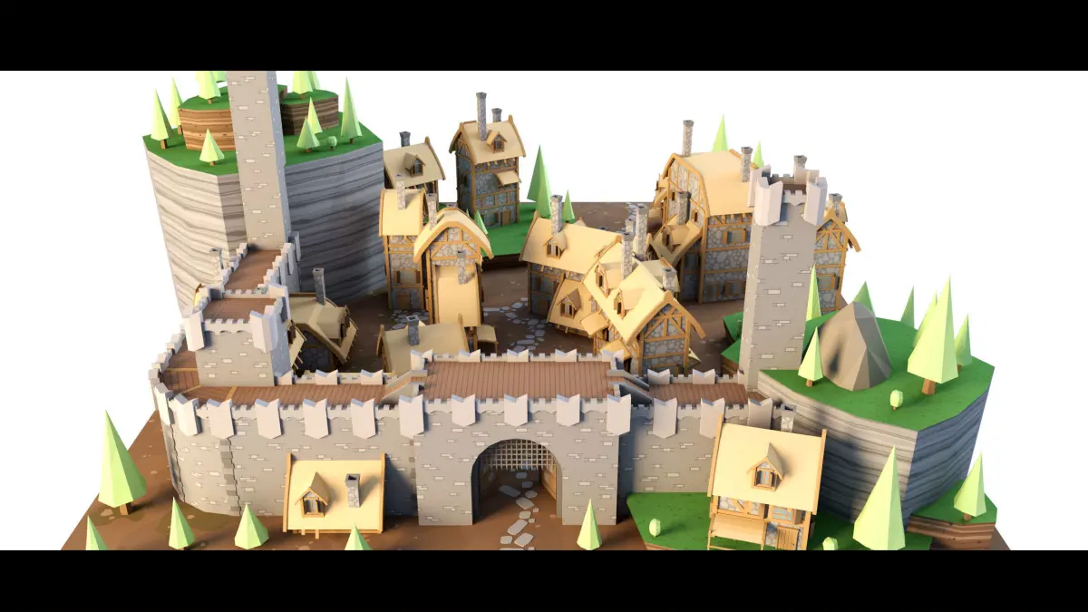 There is a 3d model of Cartoon Medieval Castle in this Product with all high quality maps and textures, that you can work on every part of it separately
