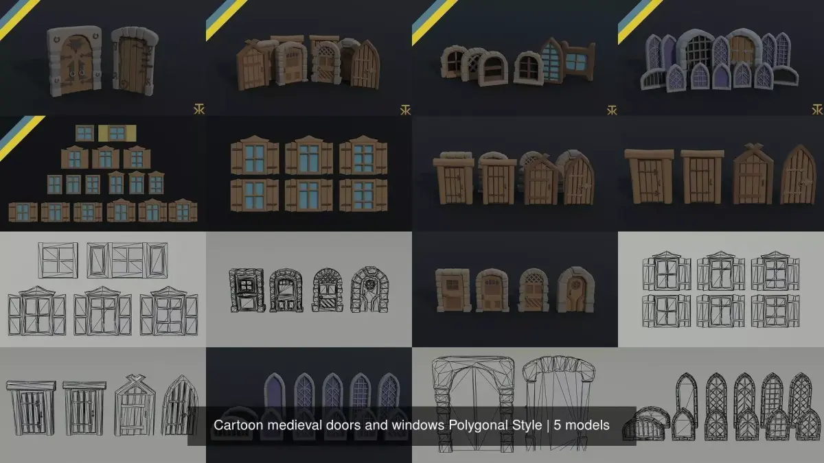 This is cartoon medieval doors and windows Polygonal Style(47 object)