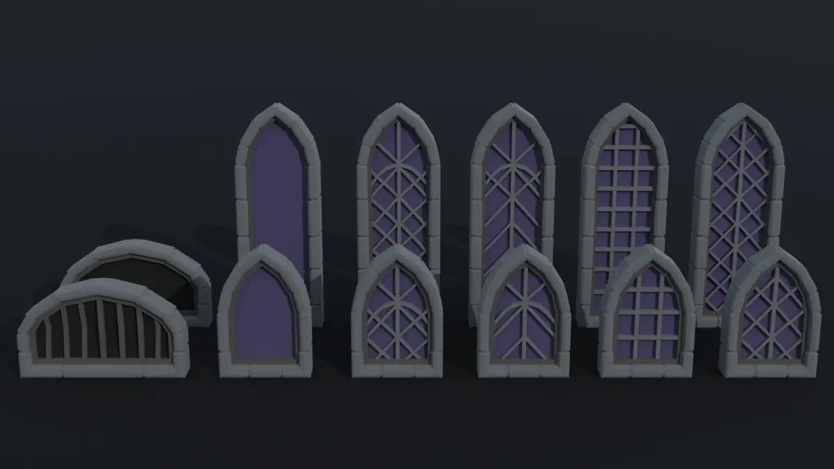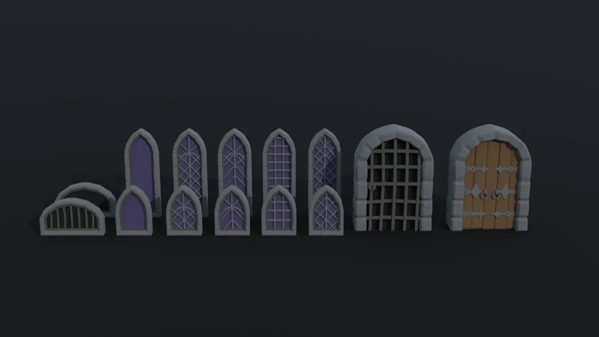This is cartoon medieval doors and windows Polygonal Style(14 object)