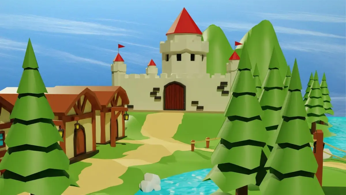 This is a low poly 3d model of Cartoon Medieval Village. Made in blender 2.93, render with cycles. The models have simple materials with diffuse colors.