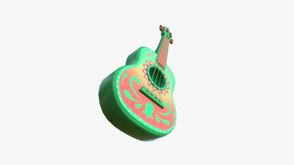 Home Catalog Cartoon Mexican Guitar A09 Green - Music Instrument Design Low-poly 3D model