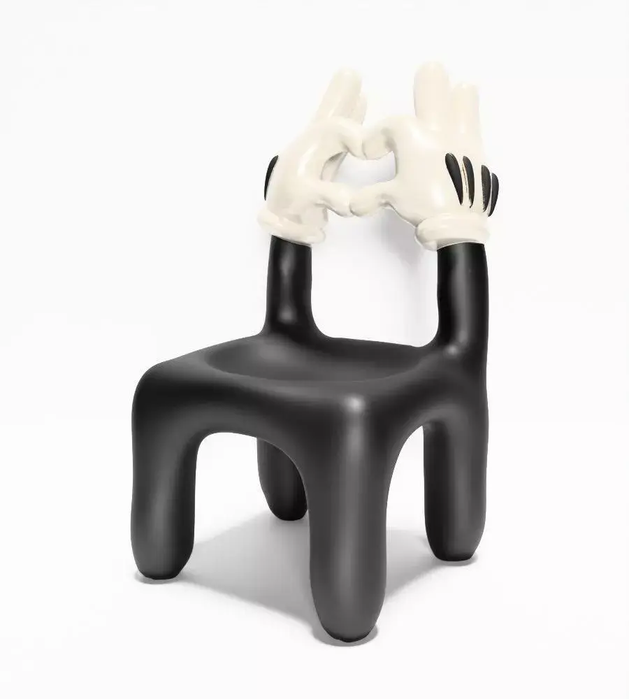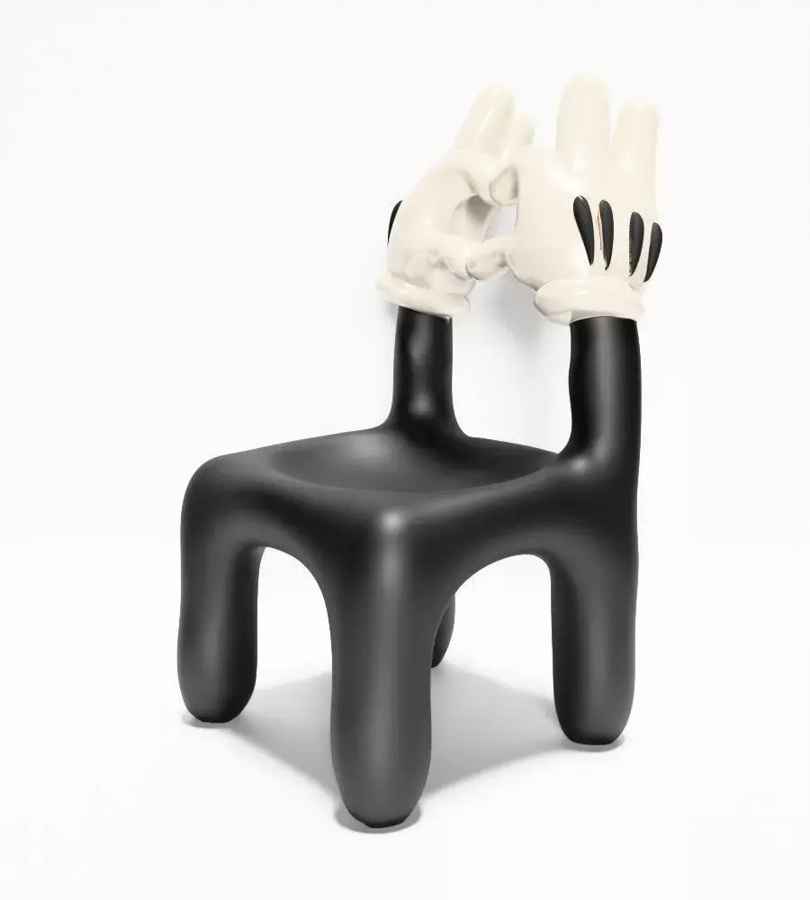 cartoon Mickey glove chaircan be described as a chair designed to look like a giant white glove reminiscent of classic cartoon gloves, such as those worn by Mickey Mouse. These gloves are recognizable by their white color with three black lines on the back, which are iconic features oftoon gloves" seen in cartoons since the early 1930s. The chair mimics the form of a cartoon glove with exaggerated, rounded finger shapes, creating a whimsical and playful piece of furniture that brings classic animation style into home decor.