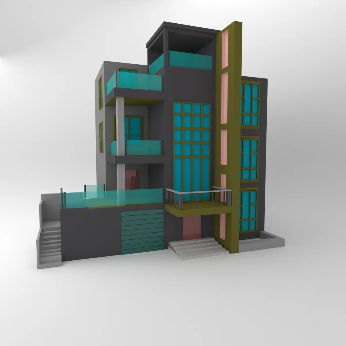cartoon modern house 3D model