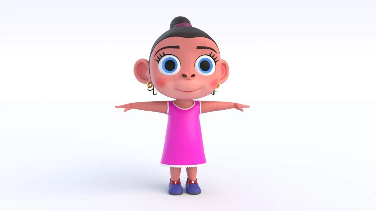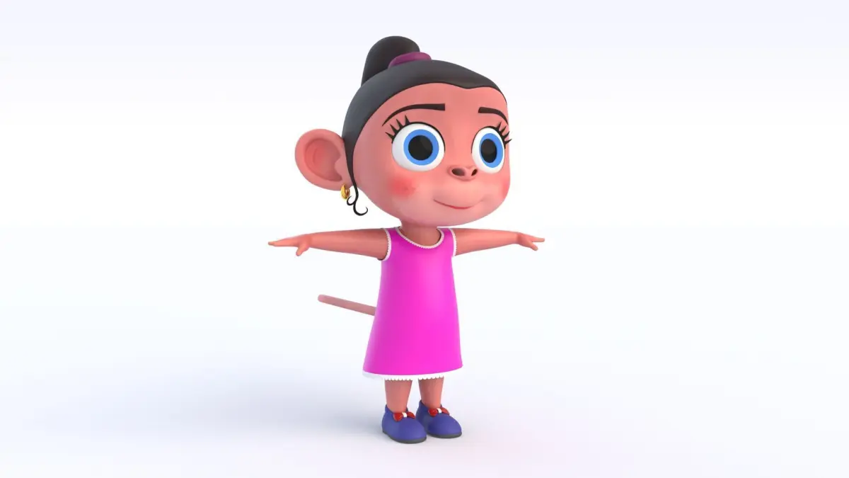 Textures are included:Please find Zip file for all FilesCartoon Monkey Girl 3D Model with Production Quality...