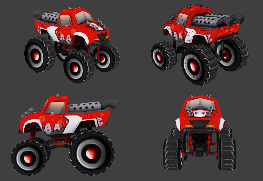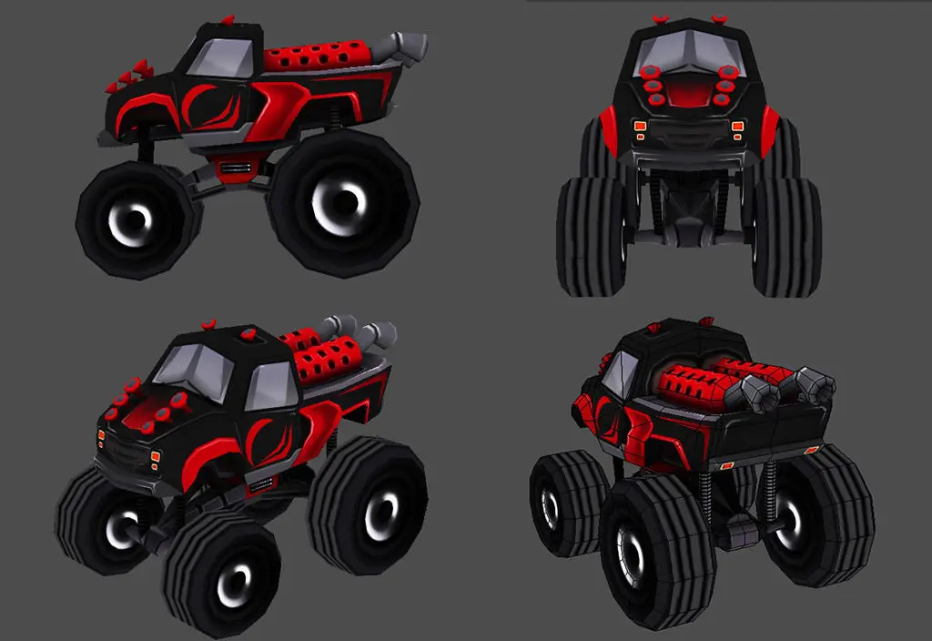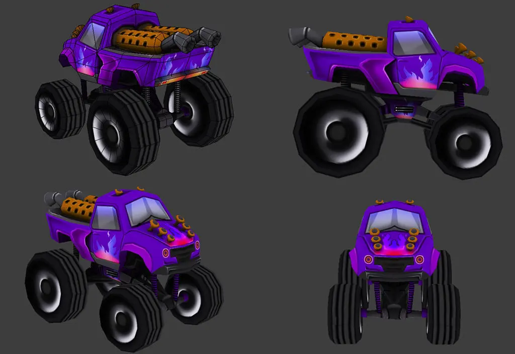 This is a car pack, with 5 low poly 3D model Cartoon Monstercar :