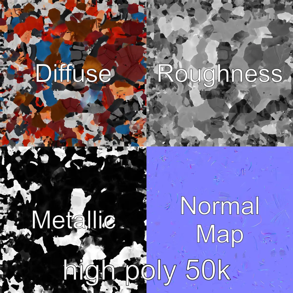 The model's textures are PBR, Diffuse, NormalMap, and Reflection/Roughness/Metallic, suitable for any modern rendering engine. All models are accurately unwrapped and have no overlapping UVs. All textures are 4096*4096 in size.