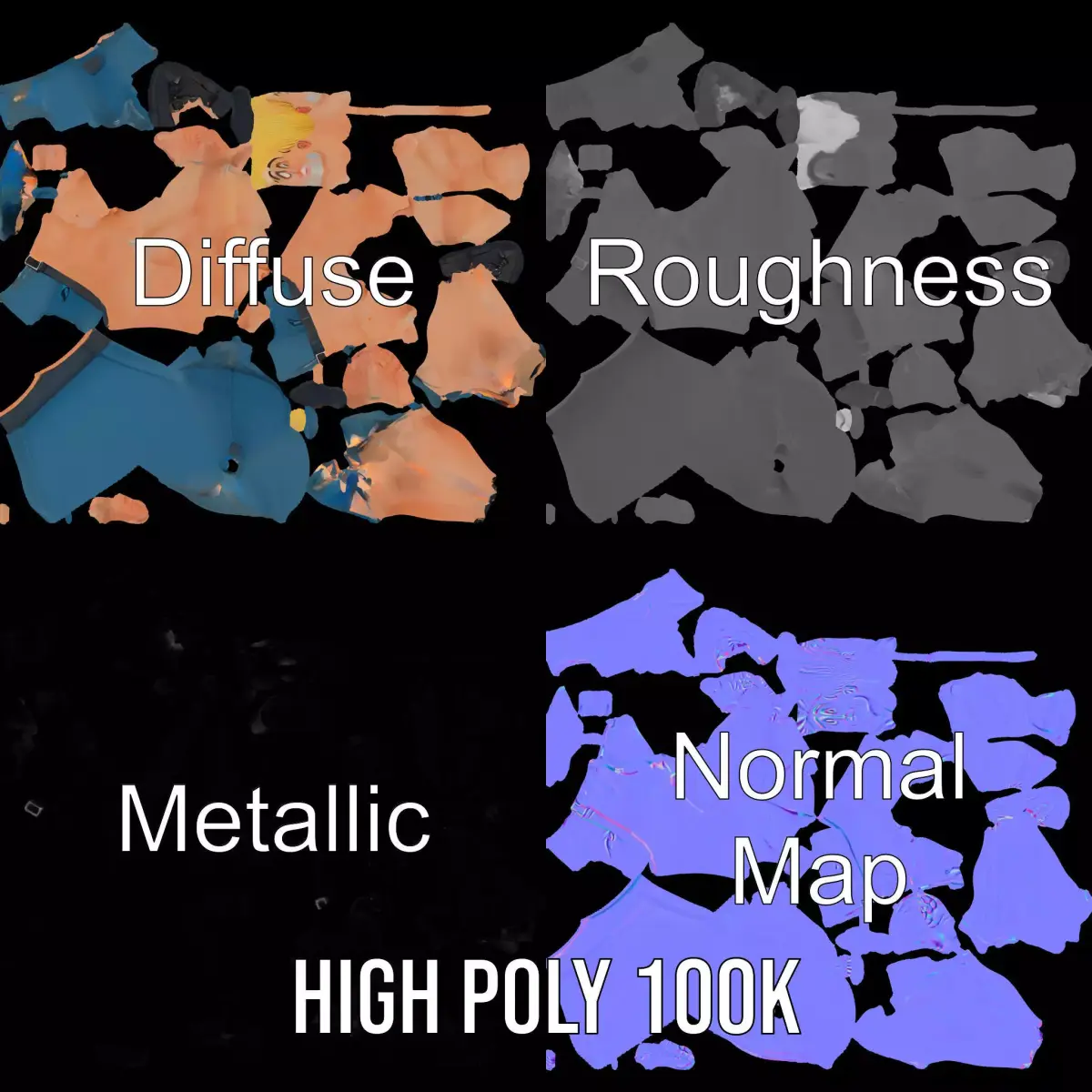 The model's textures are PBR, Diffuse, NormalMap, and reflection/roughness/metallic, which are suitable for any modern rendering engine. All models accurately unwrapped and have no overlapping UV. All textures are 4096*4096 in size.