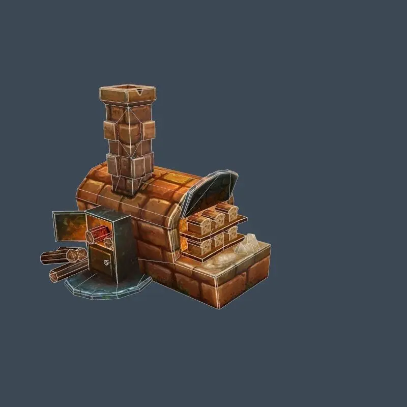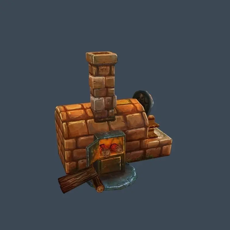 Cartoon Old Brick Oven Furnace for Cooking Low-poly 3D model