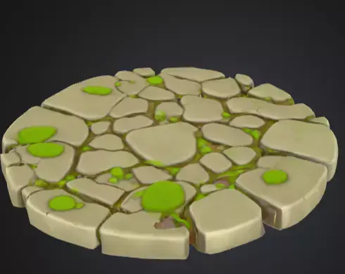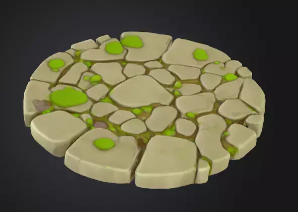 The Cartoon Old Stone Floor is a charming stylized fantasy environment asset, crafted with a hand-painted aesthetic to bring warmth and character into any scene. The design features carved stone tiles with slightly worn edges, adding a sense of age and use, while small patches of green moss nestled in the cracks create a lively, organic touch.