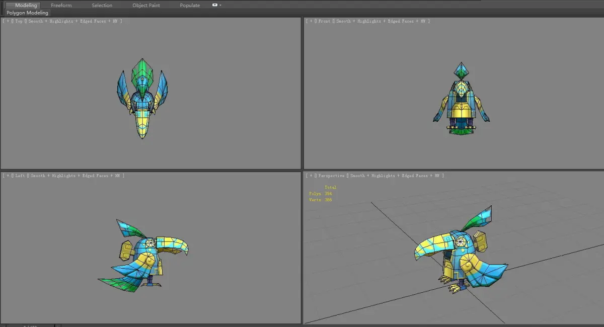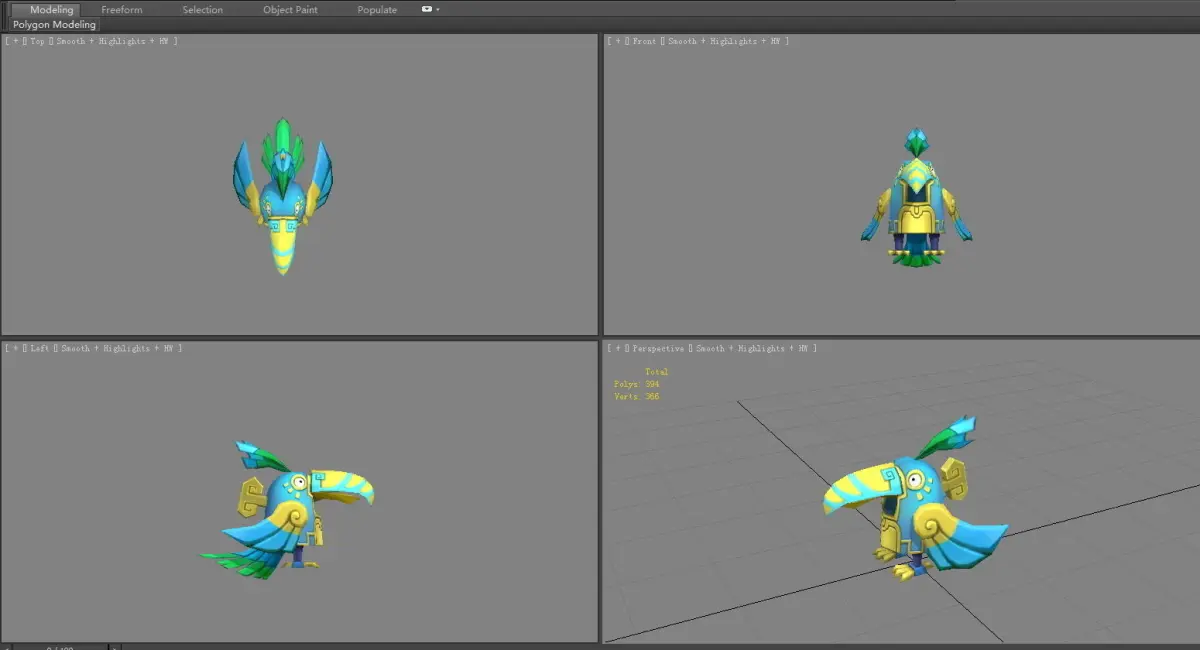 Cartoon organ bird - mechanical bird Low-poly 3D model