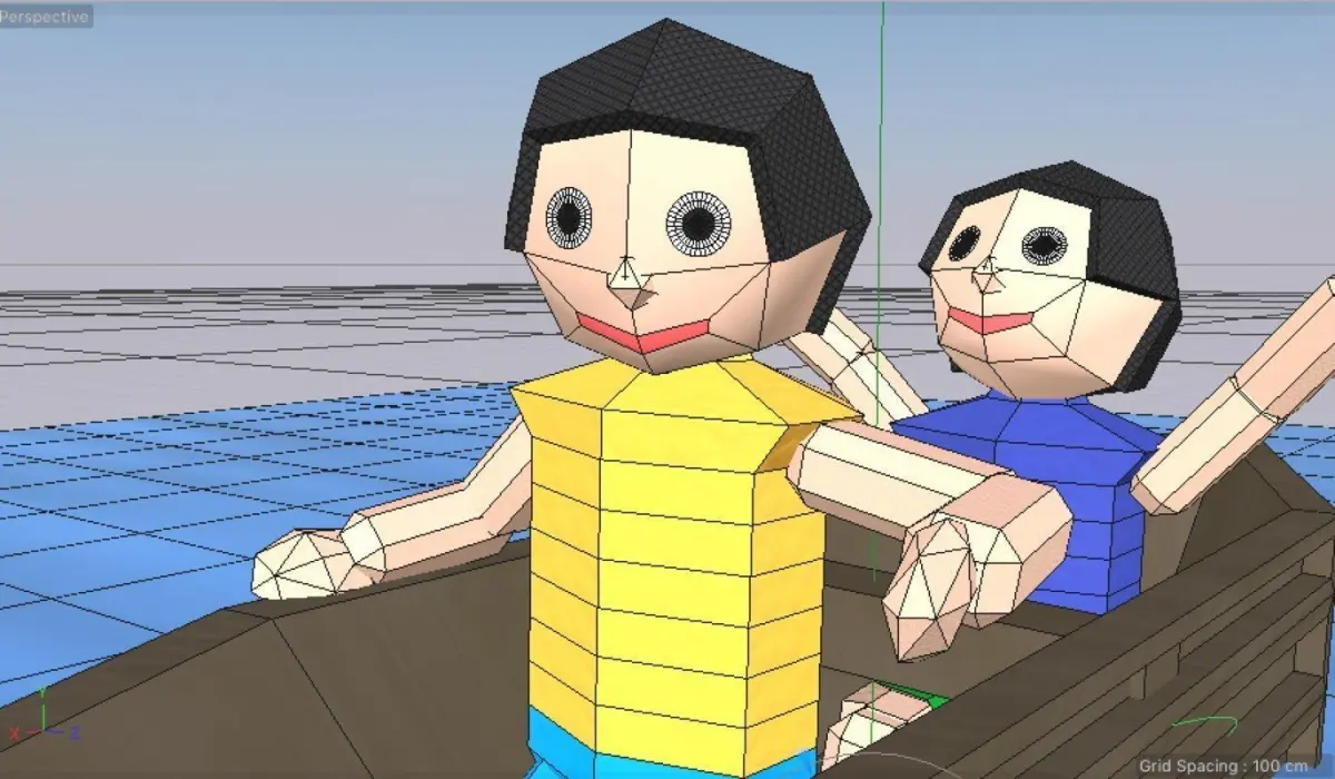 Origami Cartoon Boat with 2 kids, animated.by Cinema 4D R18