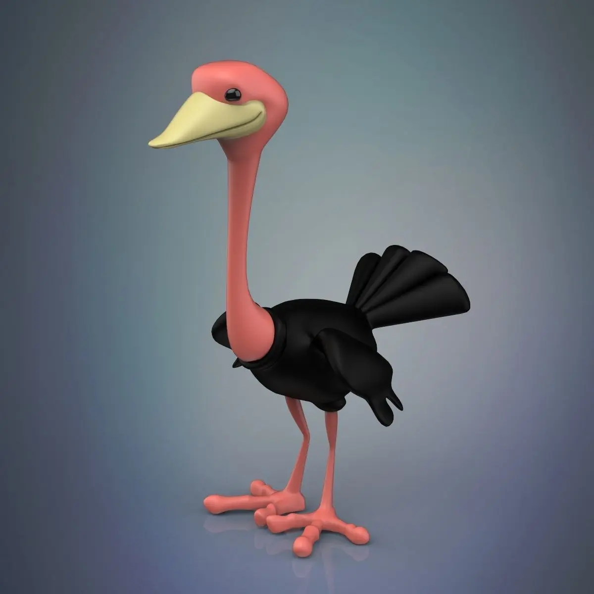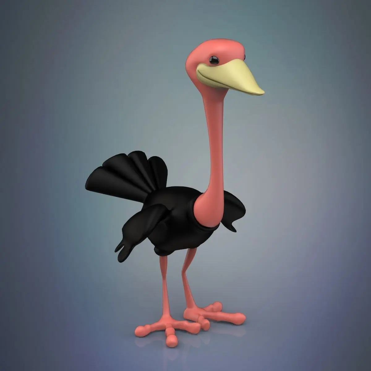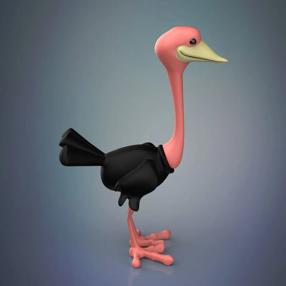 3D model of Cartoon Ostrich ,modeled in MAYA 14 and edge loops based mesh with reasonable polygon count and normal's.The geometry is made mostly on quads, and grouped Rendering,materials (standard) are Included and detailed with all files.
