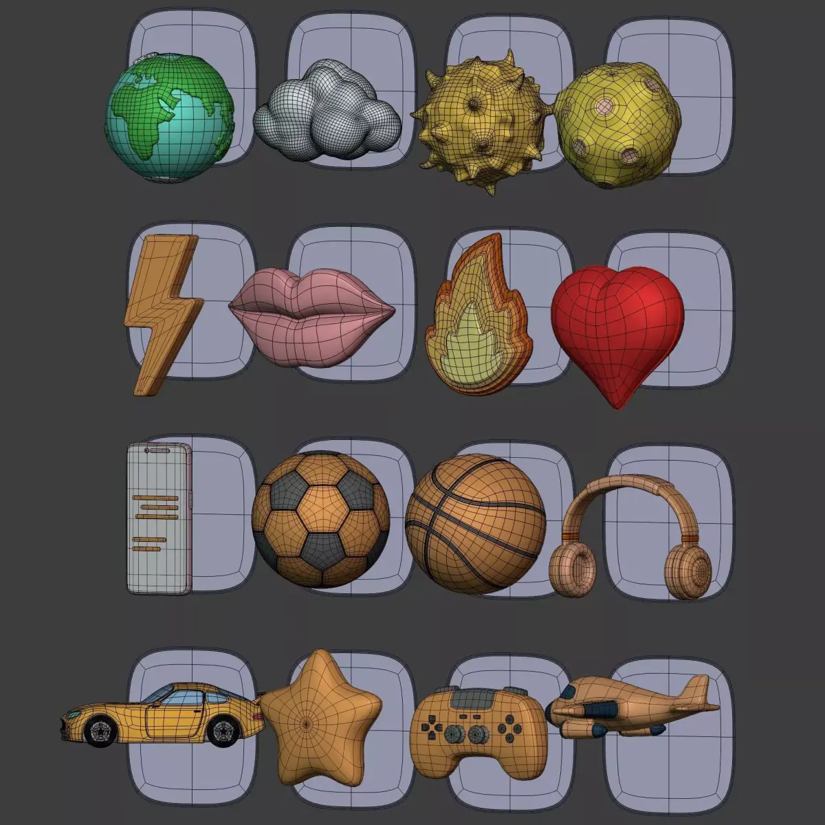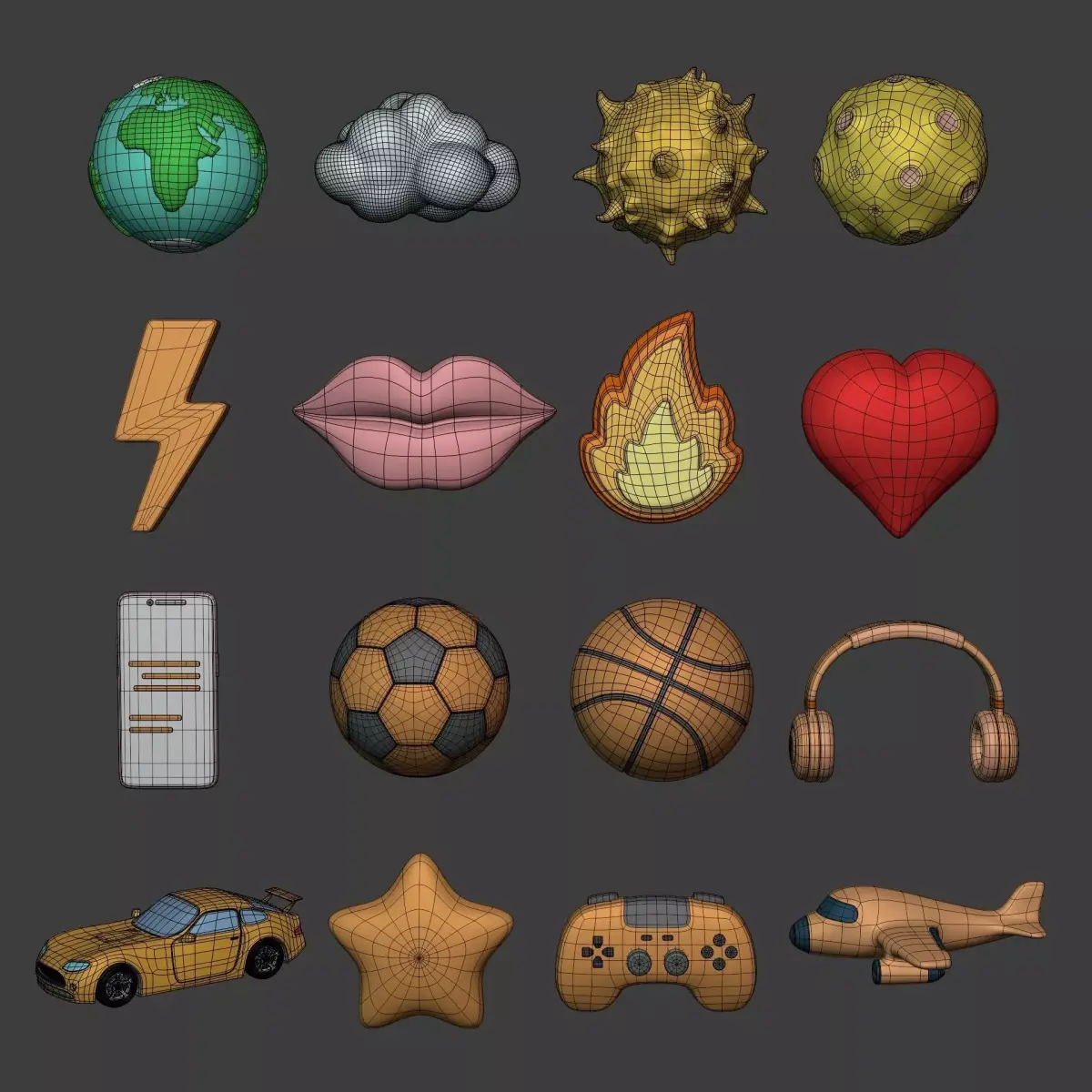 Cartoon Pack - Planet Plane Sun Moon Cloud Smartphone Controller Low-poly 3D model