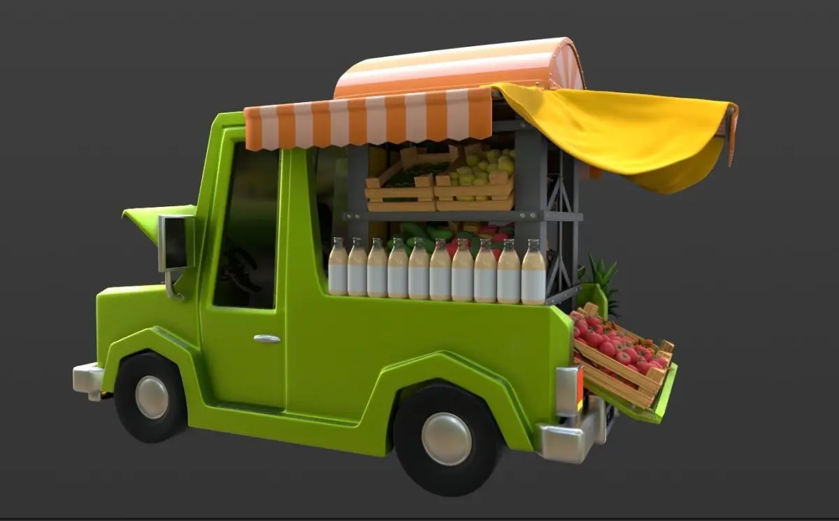 Cartoon Pickup Truck modeled in Blender 3.1.