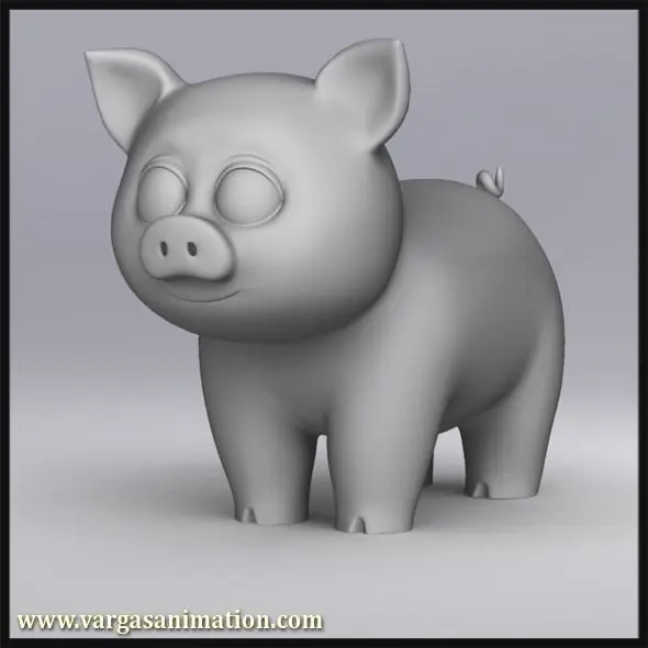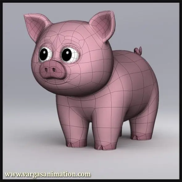 Lower res cute, cartoon pig with simple ramp shaders, one texture file for the body color, and mental ray lighting setup. The original .MA file includes a low res pig and a higher res smoothed version (hidden), as well as high res and low res .OBJ exports. The eyes are in a separate group with a simple lattice deformer. Enjoy!