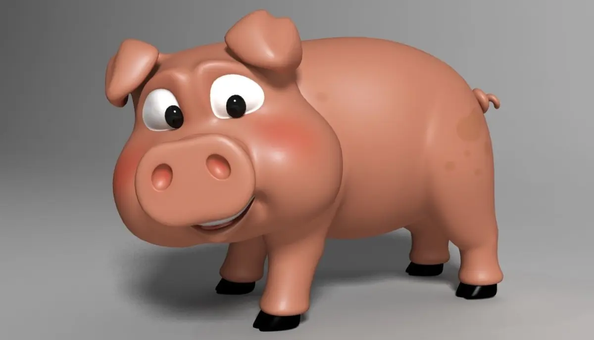 Low Poly of a cute cartoon pig made with 3D Studio Max 8