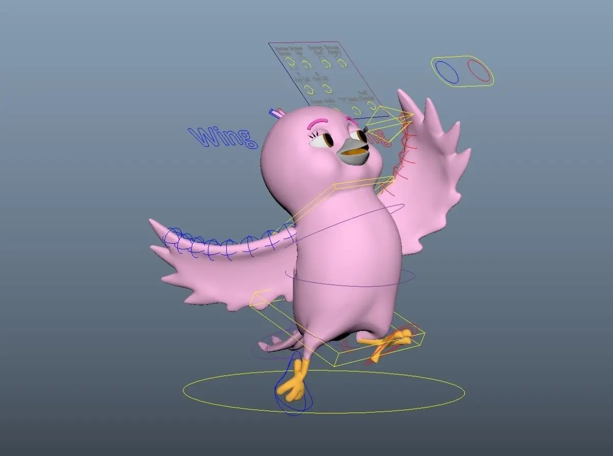 Cartoon Pink color bird. You can change or add costume props inside the rig.