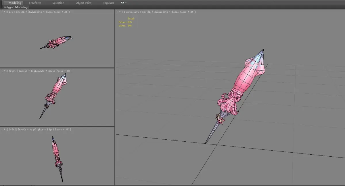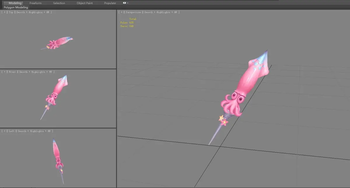 Cartoon pink squid sword Low-poly 3D model