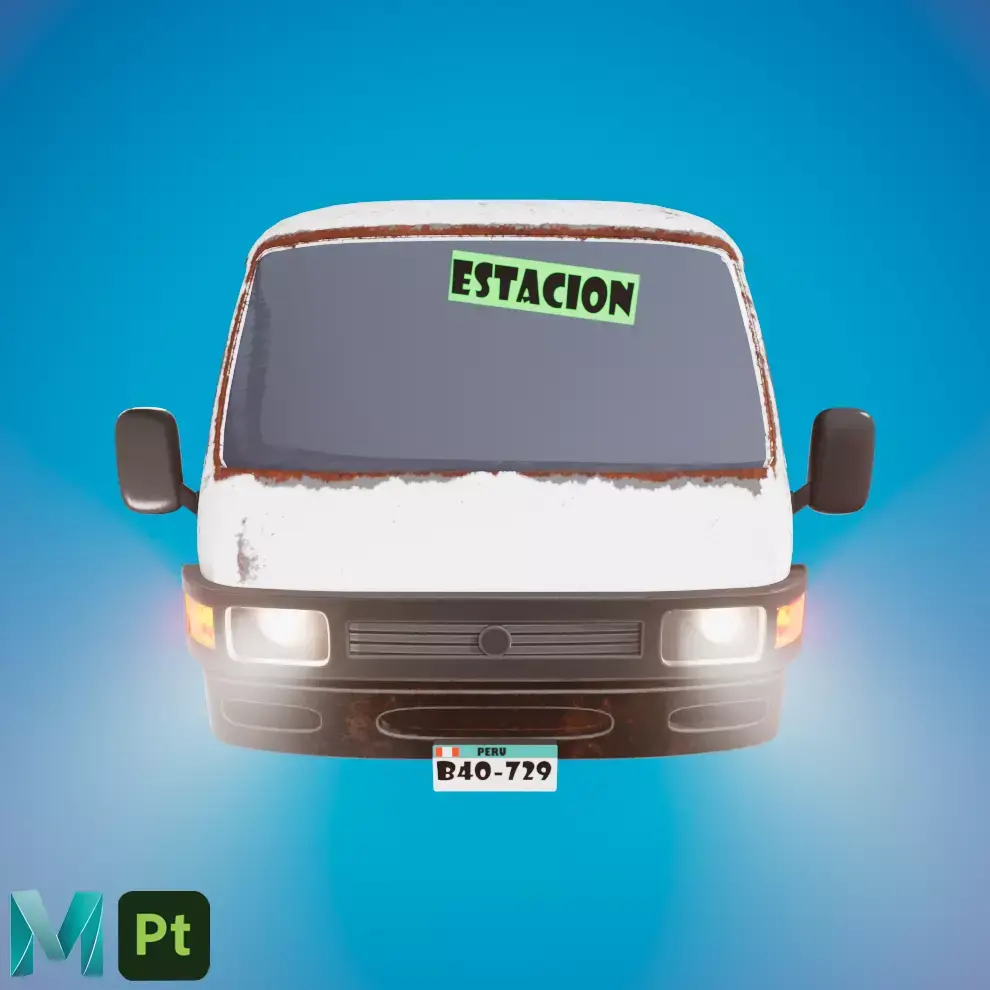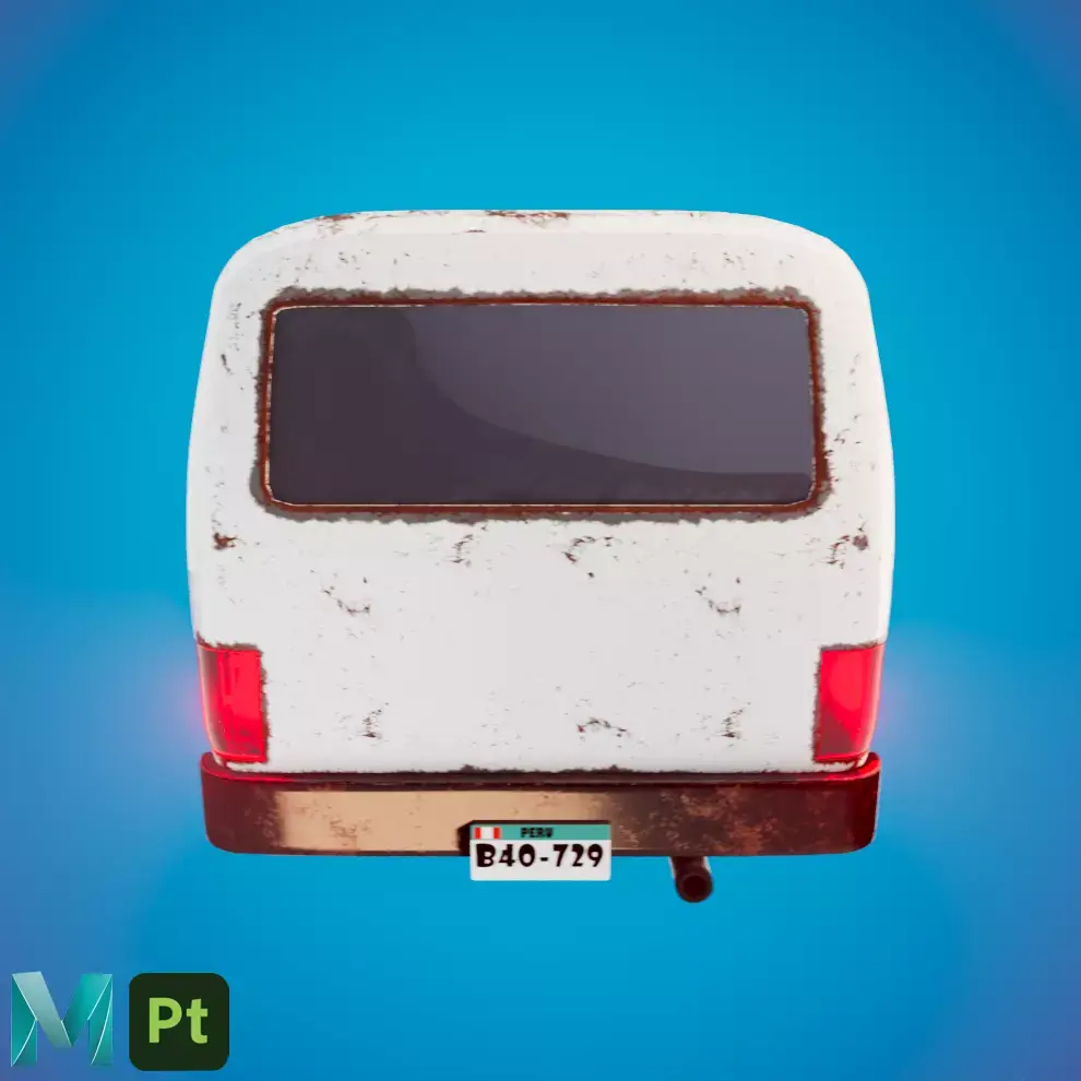 This is a design of a worn cartoon combi from an area with scarce resources, the design was made in Maya and textured in Substance Painter, it has no interior, it is only the exterior design and textures, I attach an obj, fbx, .mb file and a rar file with the textures