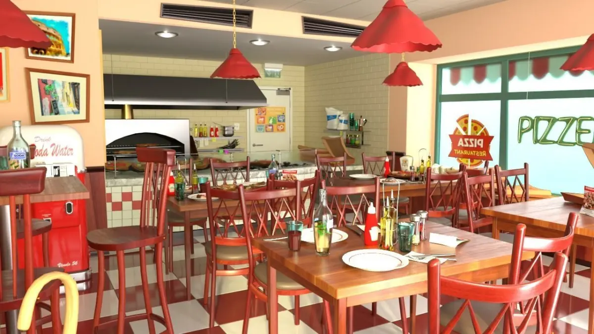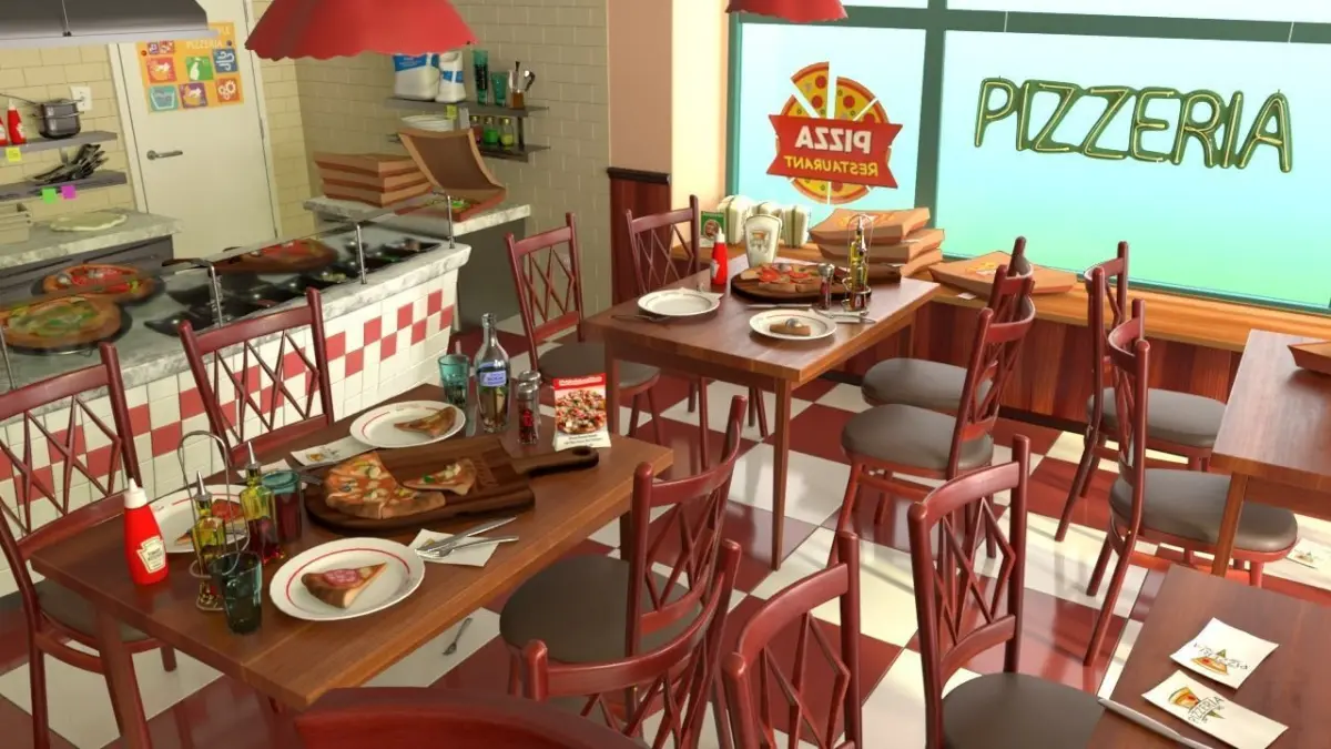 HIGH QUALITY CARTOON PIZZERIA.Ready for: Movies, TV, advertising, etc.