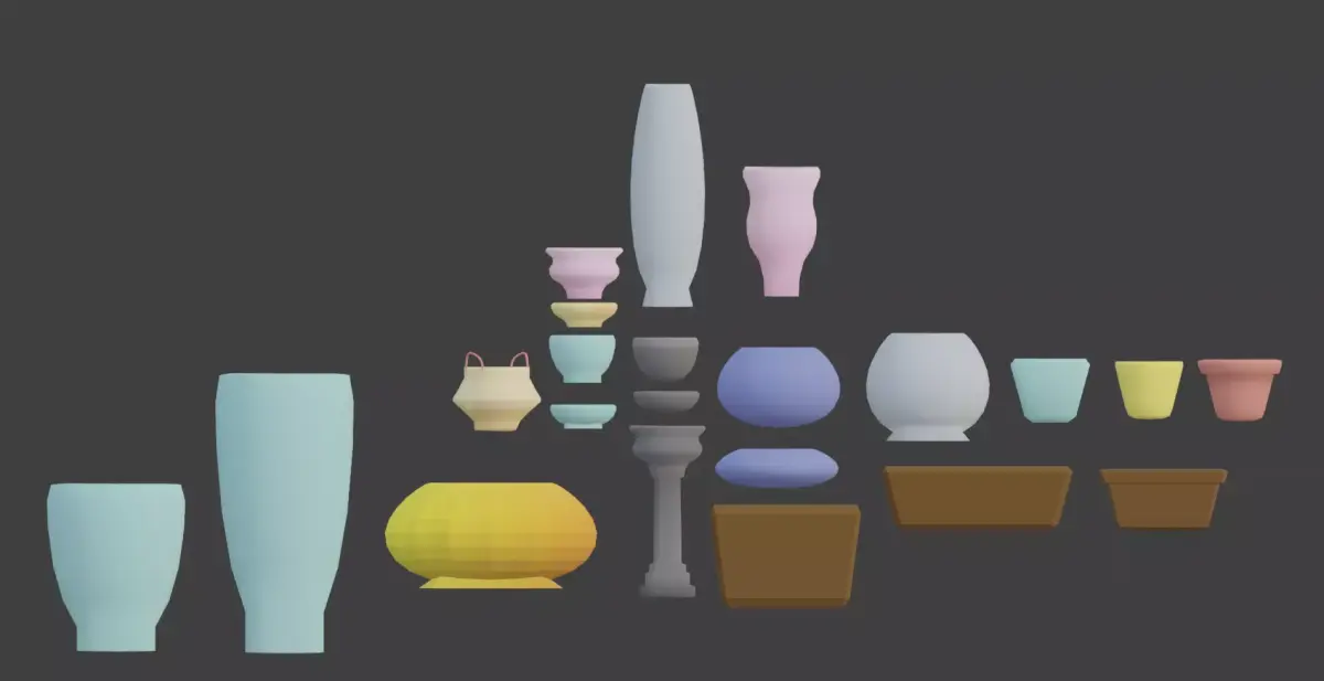 A fun collection of cartoon-style plant pots designed to add personality to any interior scene. The pack includes a variety of unique pot designs, perfect for home, office, or playful 3D environments. All models use a single texture setup, making it super easy to customize, lightweight to render, and ideal for fast workflow integration. Great for interior decor, animation, stylized games, or kid-friendly visuals.