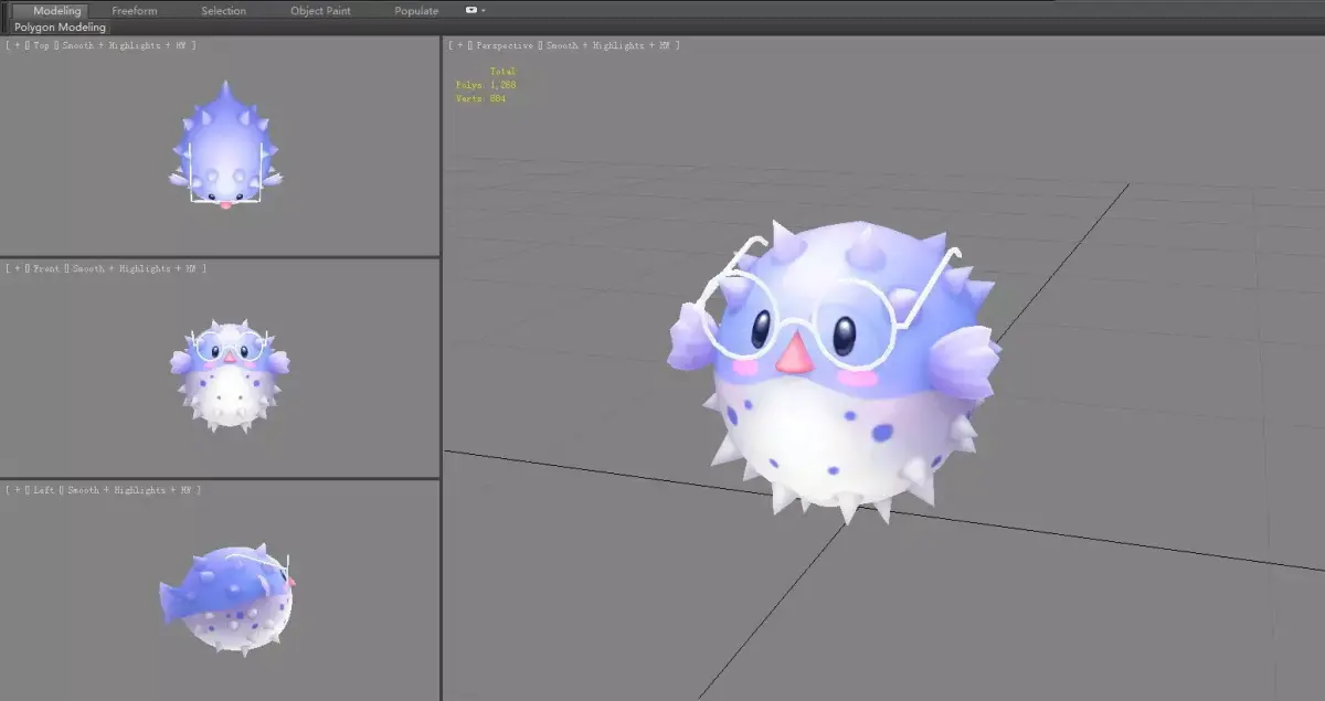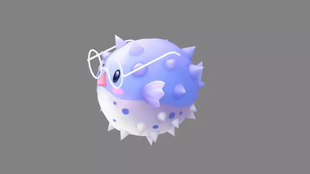 Cartoon purple pufferfish with glasses Low-poly 3D model