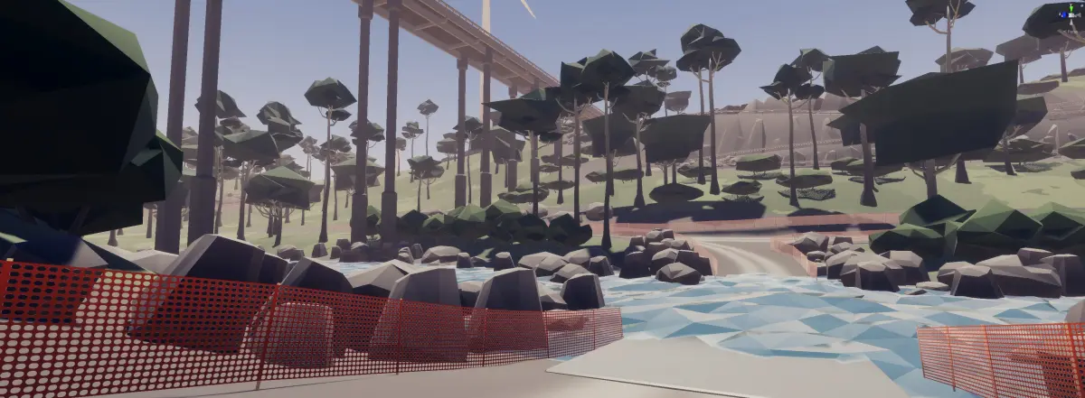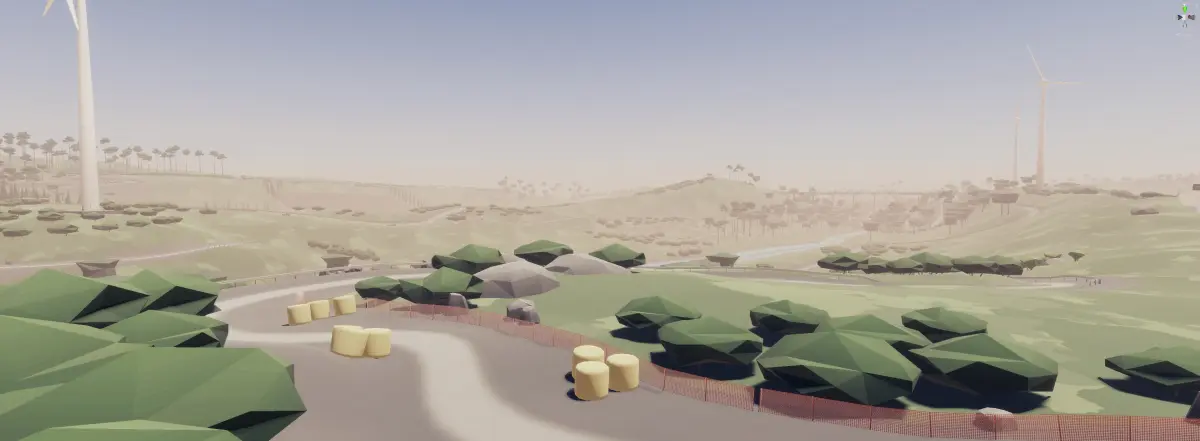 - Ease of use. You don't have to spend hours sticking together straights and corners to make a race track. All you have to do is drag prefabs into an empty scene, and you have a cool looking cartoon track with road, grass, mountains, trees, garages, walls and everything else you might need. All what's left is to place your vehicle prefab and start testing.